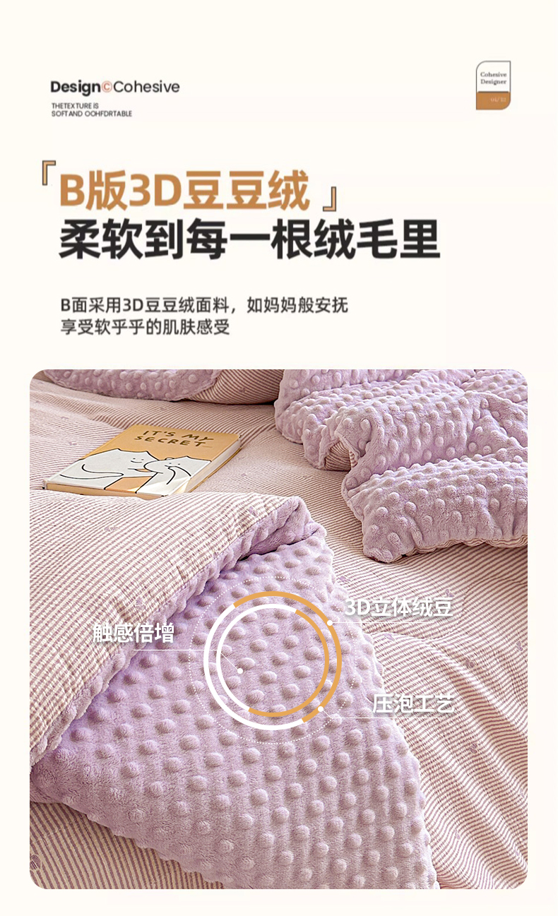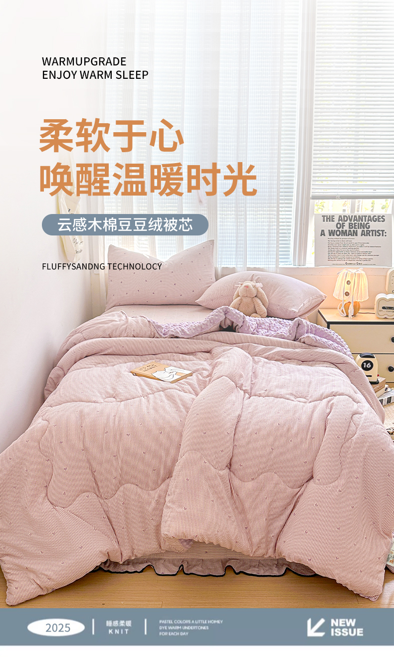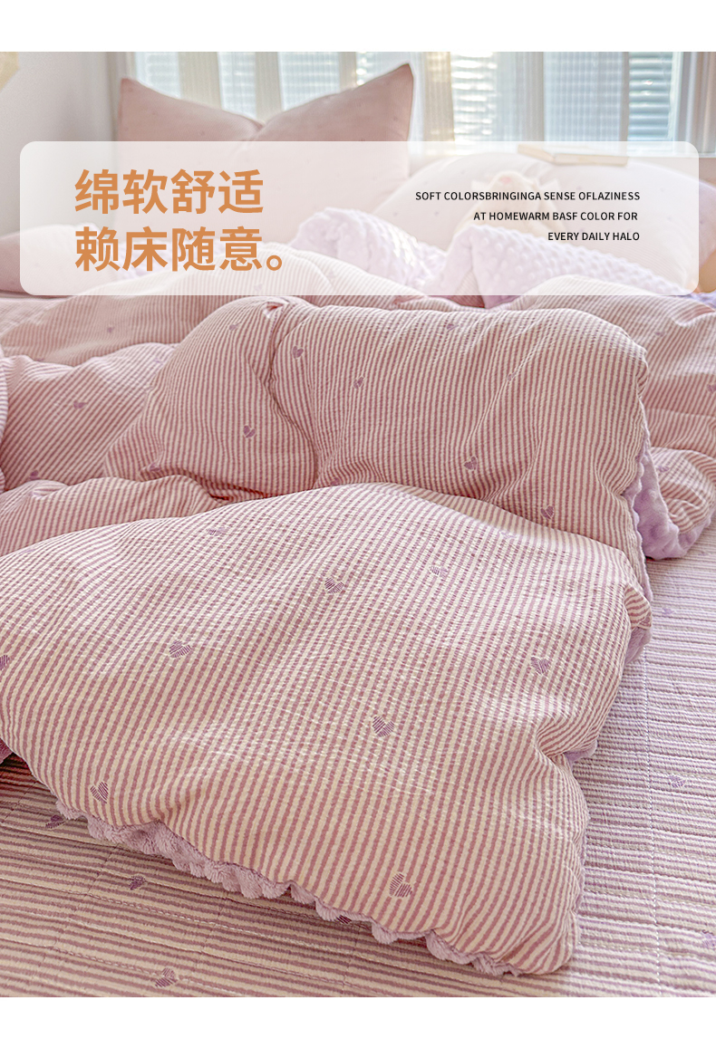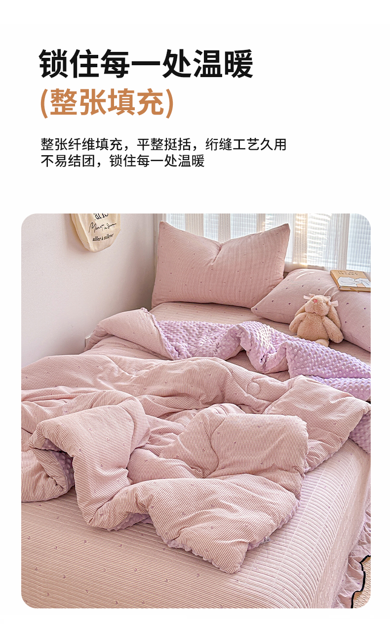 • 91家纺网 家纺一手货源 找家纺 繁花家居 2025新款床盖豆豆被套春秋被套冬被云感超软木棉被子被芯 花边床盖-豆豆被-紫绒梦心