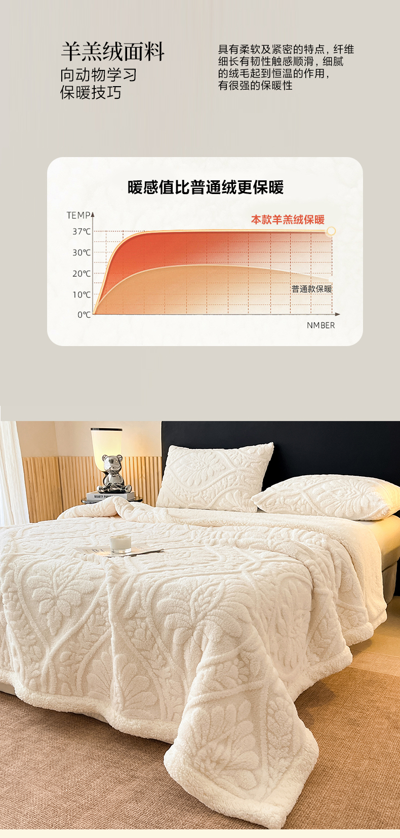乐家欣 2025新款提塔芙绒绒羊羔绒毛毯-繁花 繁花-象牙白