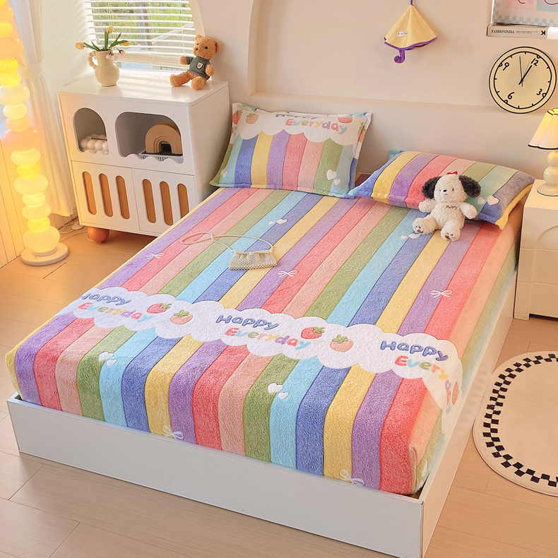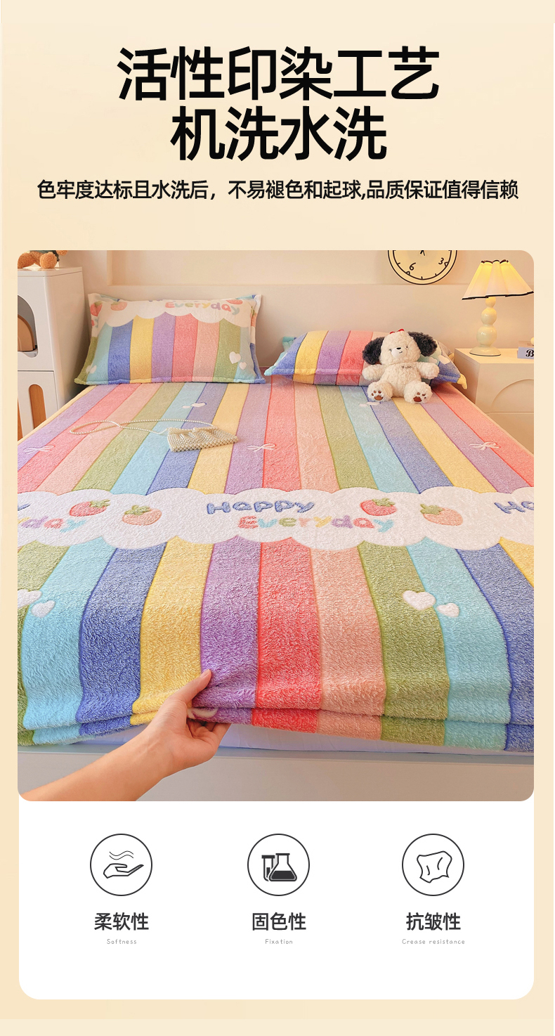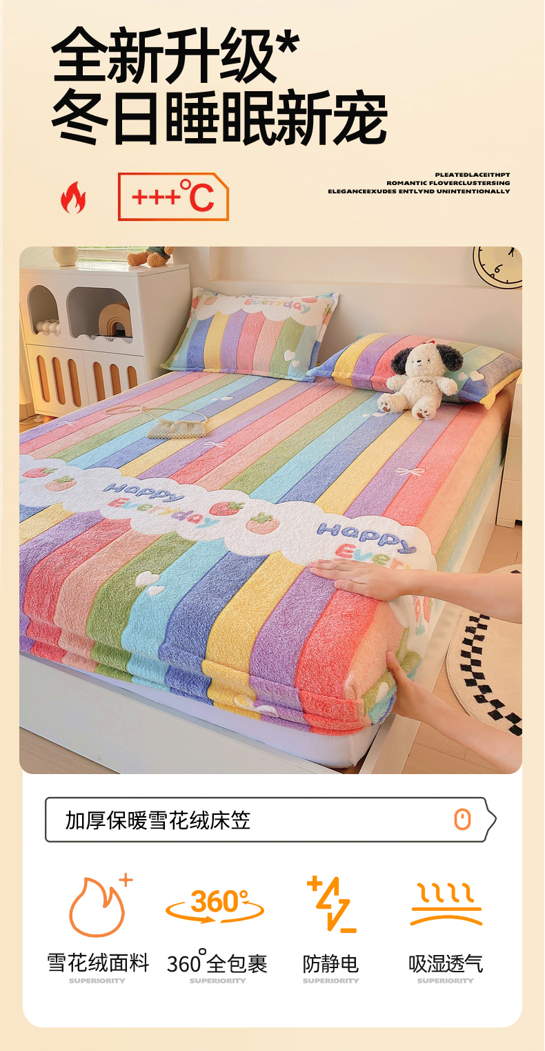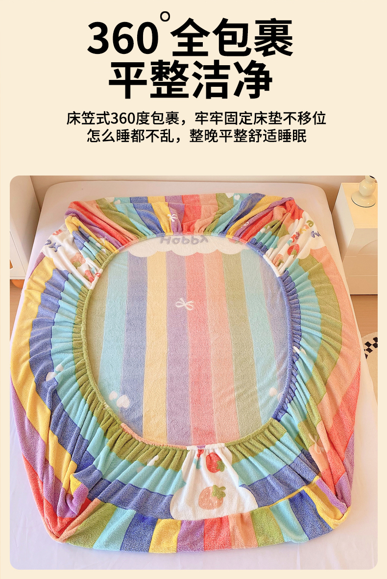 • 91家纺网 家纺一手货源 找家纺 梦尚舒 2025新款180克雪花绒床笠单品床笠床笠单件 甜心彩虹