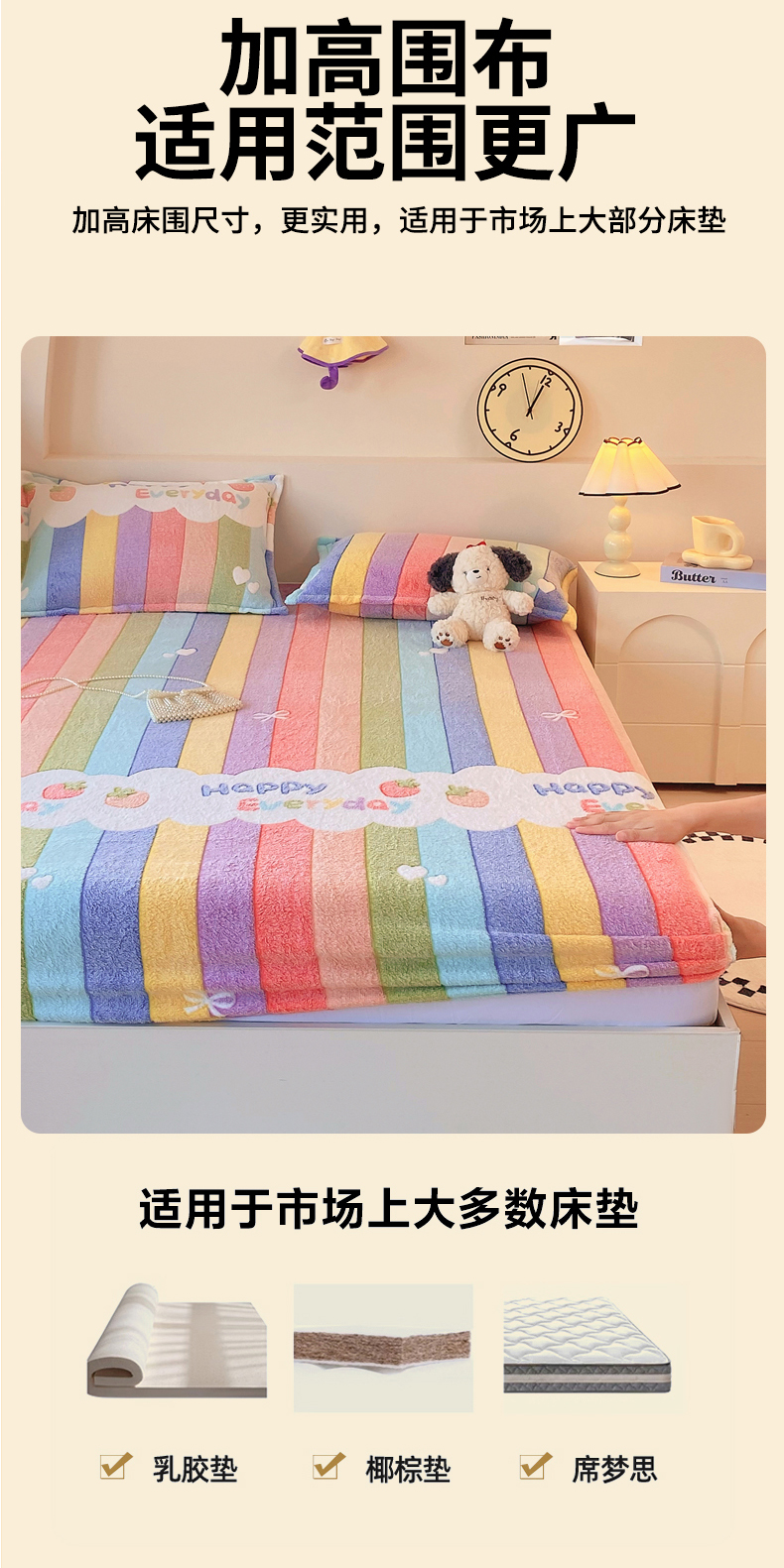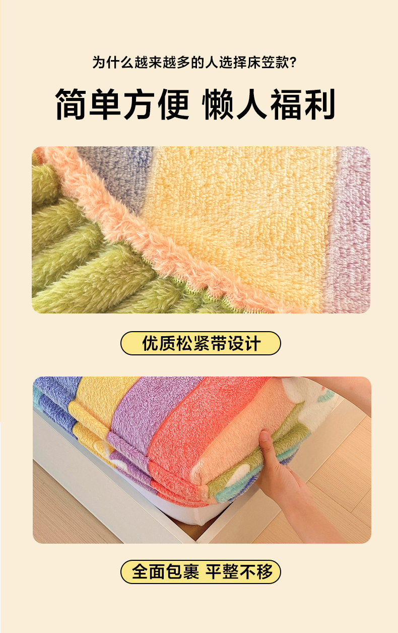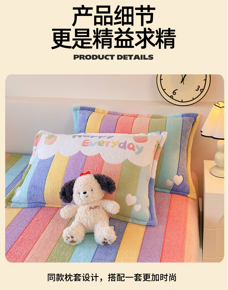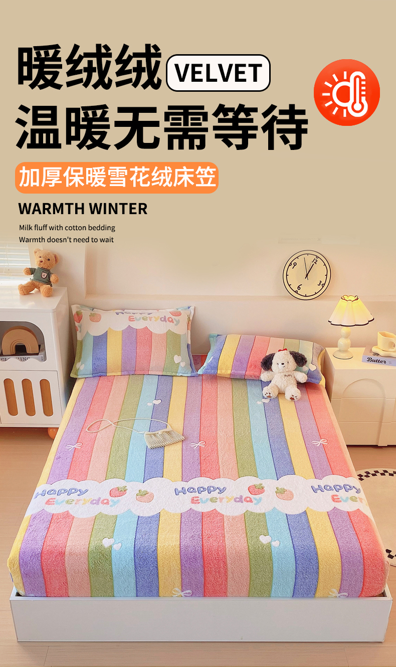 • 91家纺网 家纺一手货源 找家纺 梦尚舒 2025新款180克雪花绒床笠单品床笠床笠单件 甜心彩虹