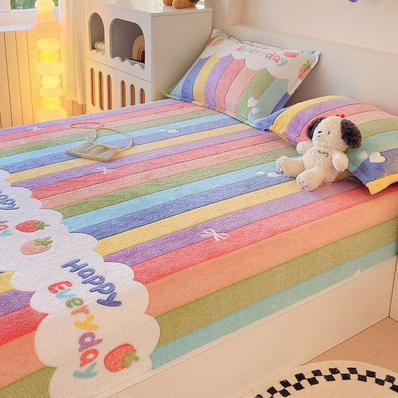 梦尚舒 2025新款180克雪花绒床笠单品床笠床笠单件 甜心彩虹