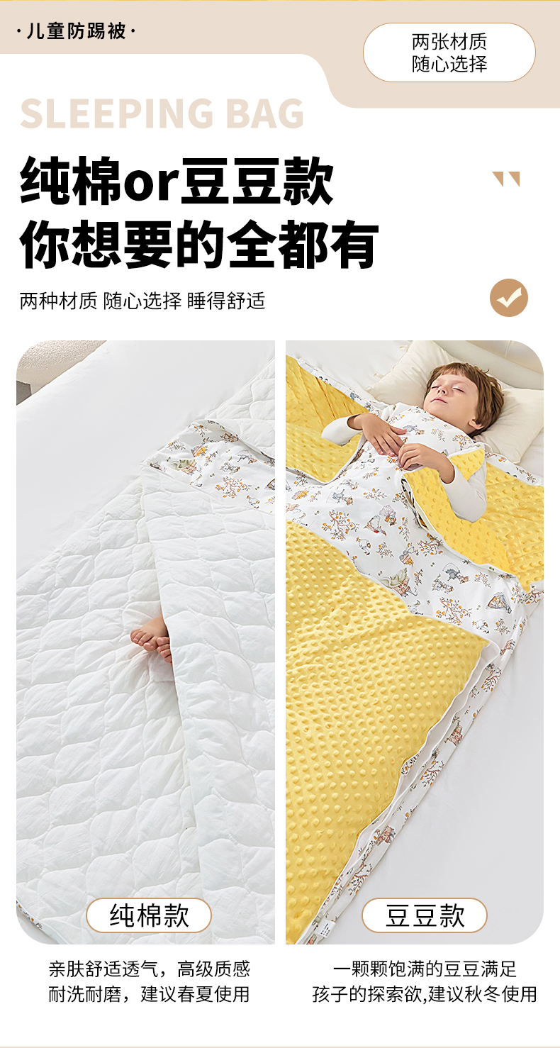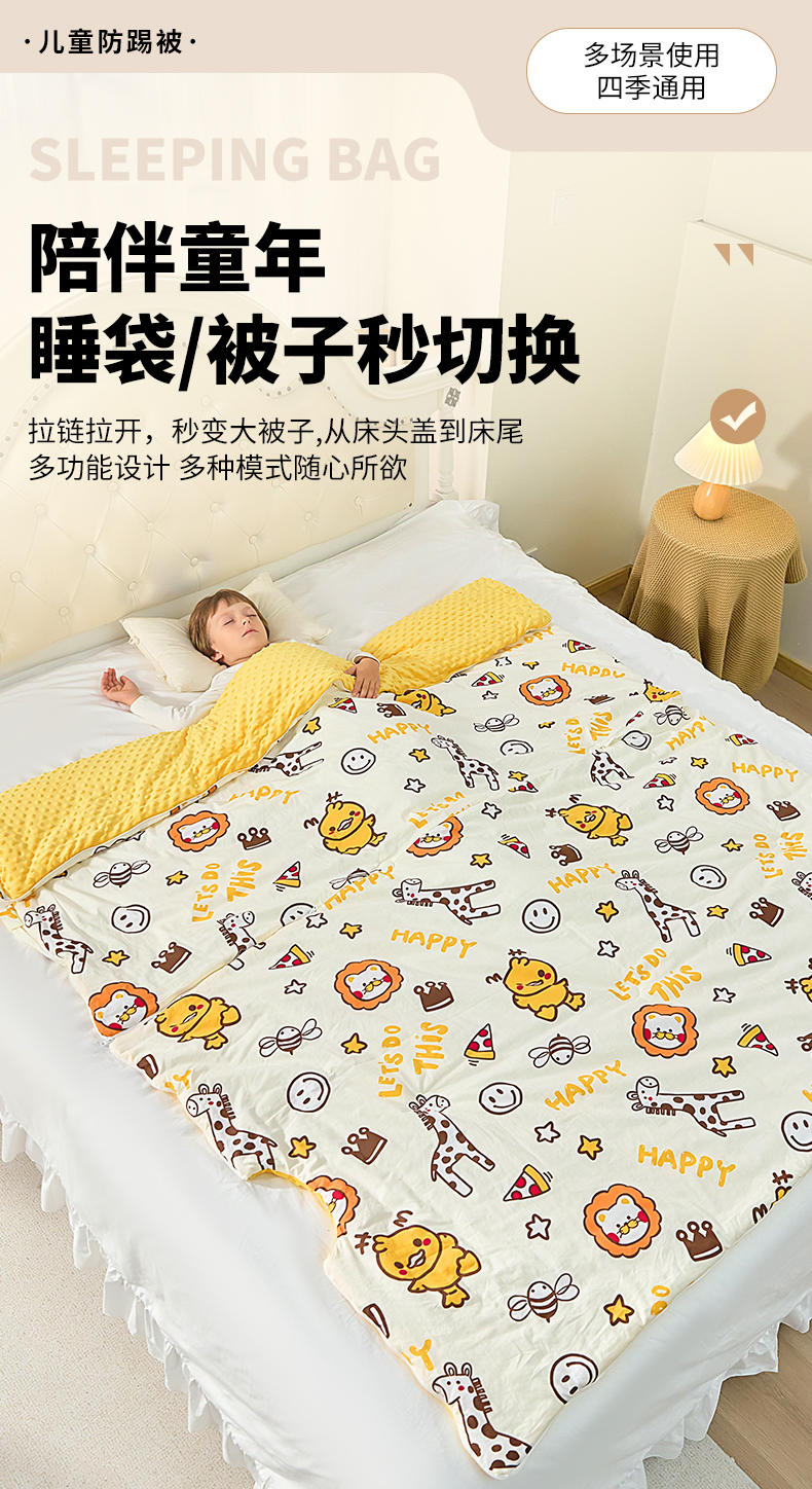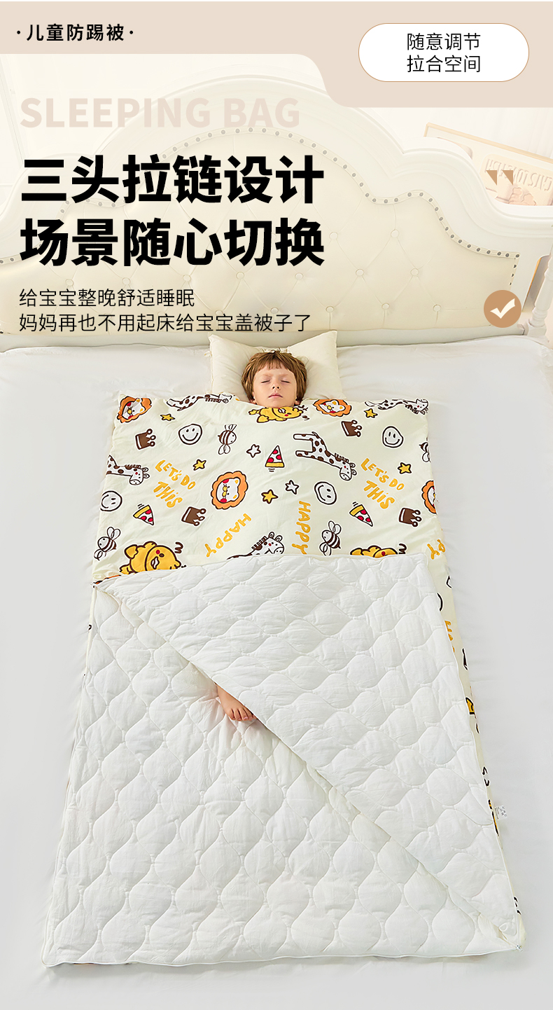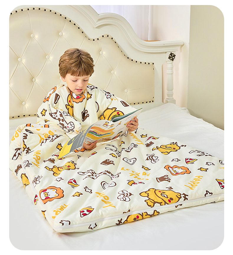 当前位置: 91家纺网 > 商品网购 > 婴童用品 > 婴童睡袋/防踢被 > 嗨皮宝贝 2025新款儿童防踢被秋冬款季加厚睡袋中大童小孩防蹬被子神器四季通用 恐龙世界黄-纯棉款-薄款夹棉120g