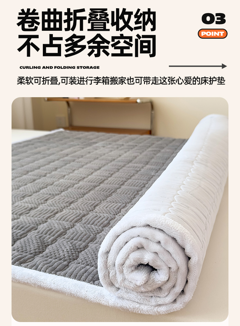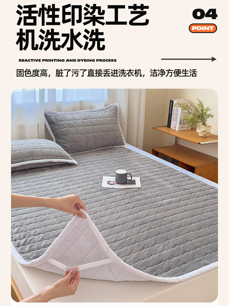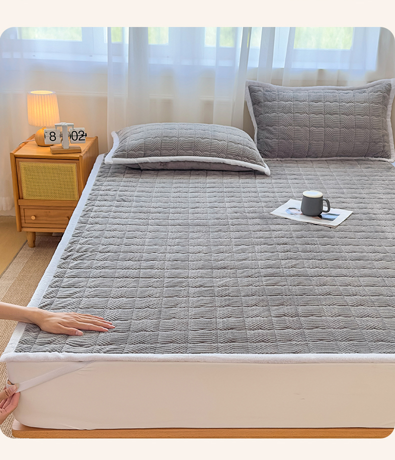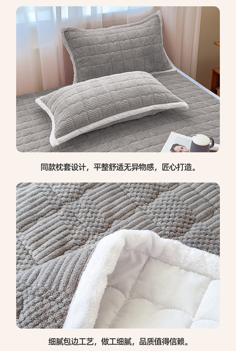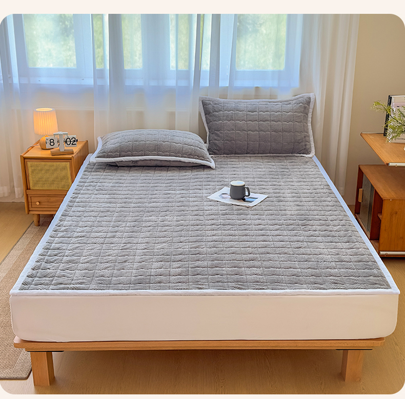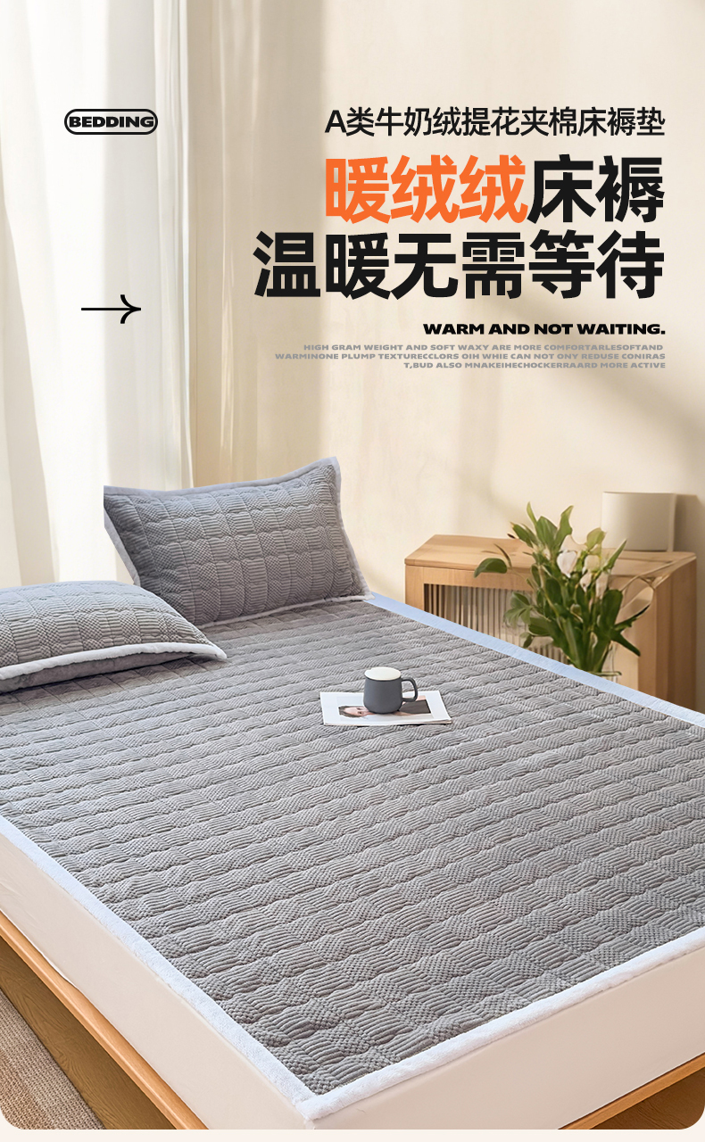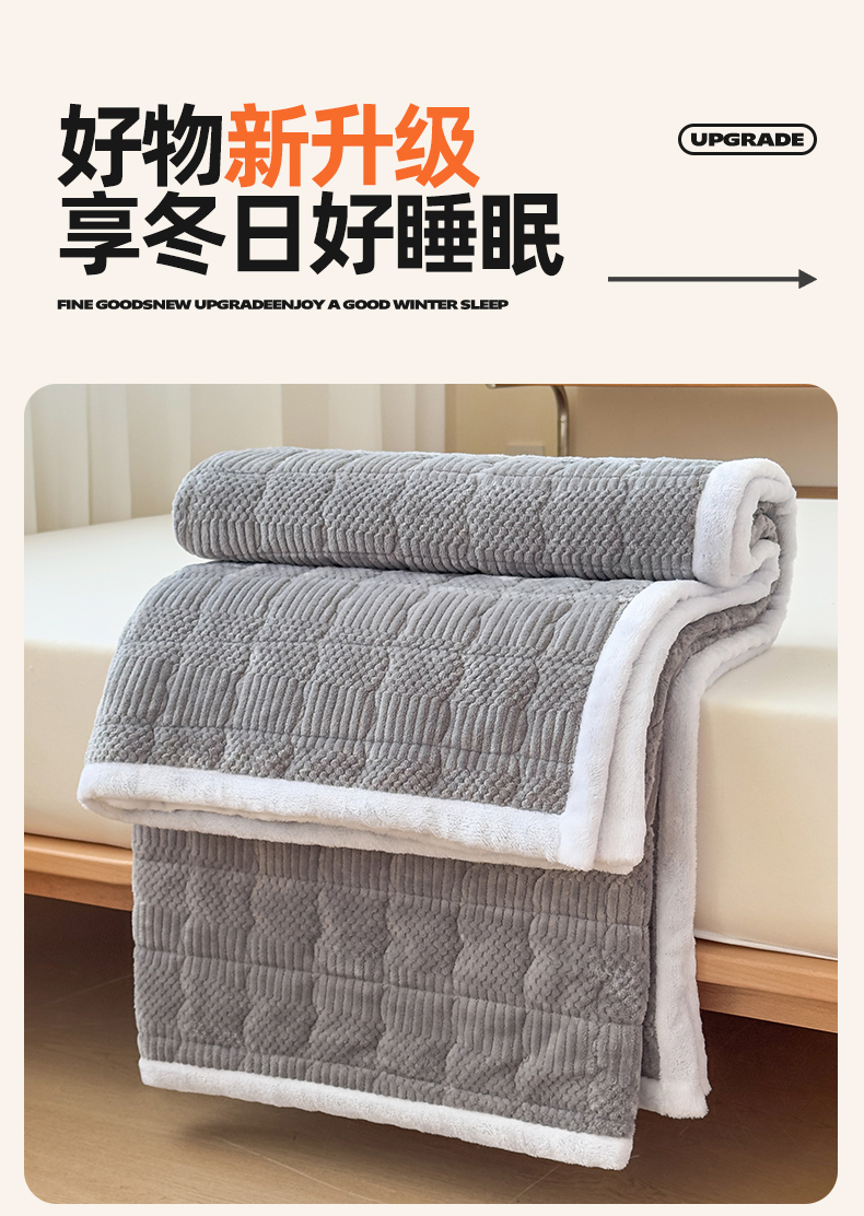 • 91家纺网 家纺一手货源 找家纺 恒爱家纺 2025新款牛奶绒提花床垫床褥 绅士灰