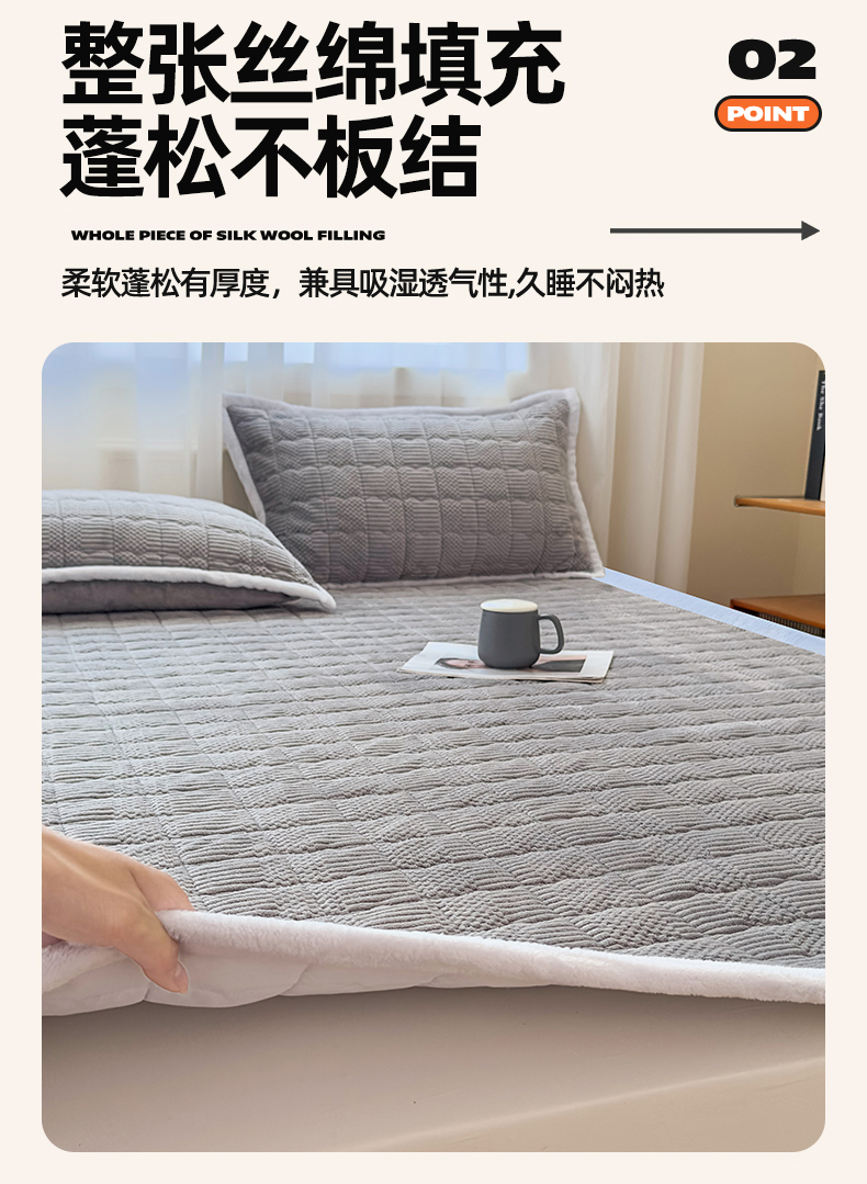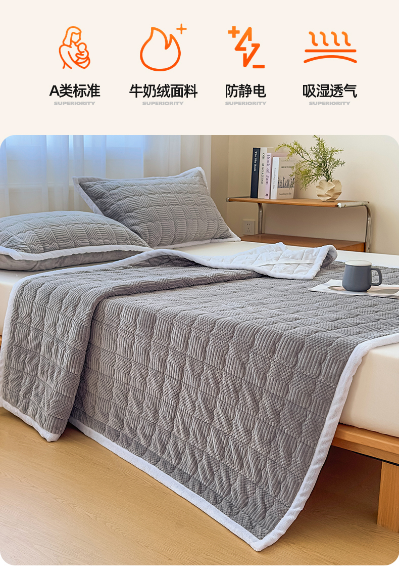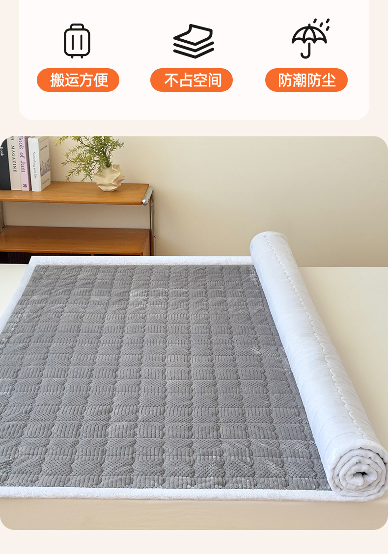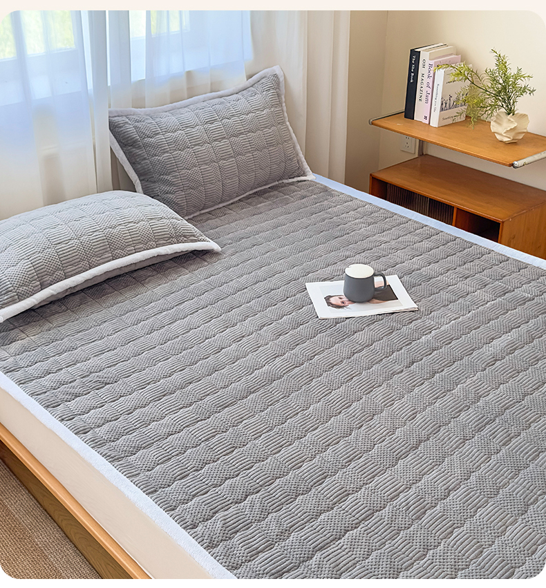 恒爱家纺 2025新款牛奶绒提花床垫床褥 绅士灰