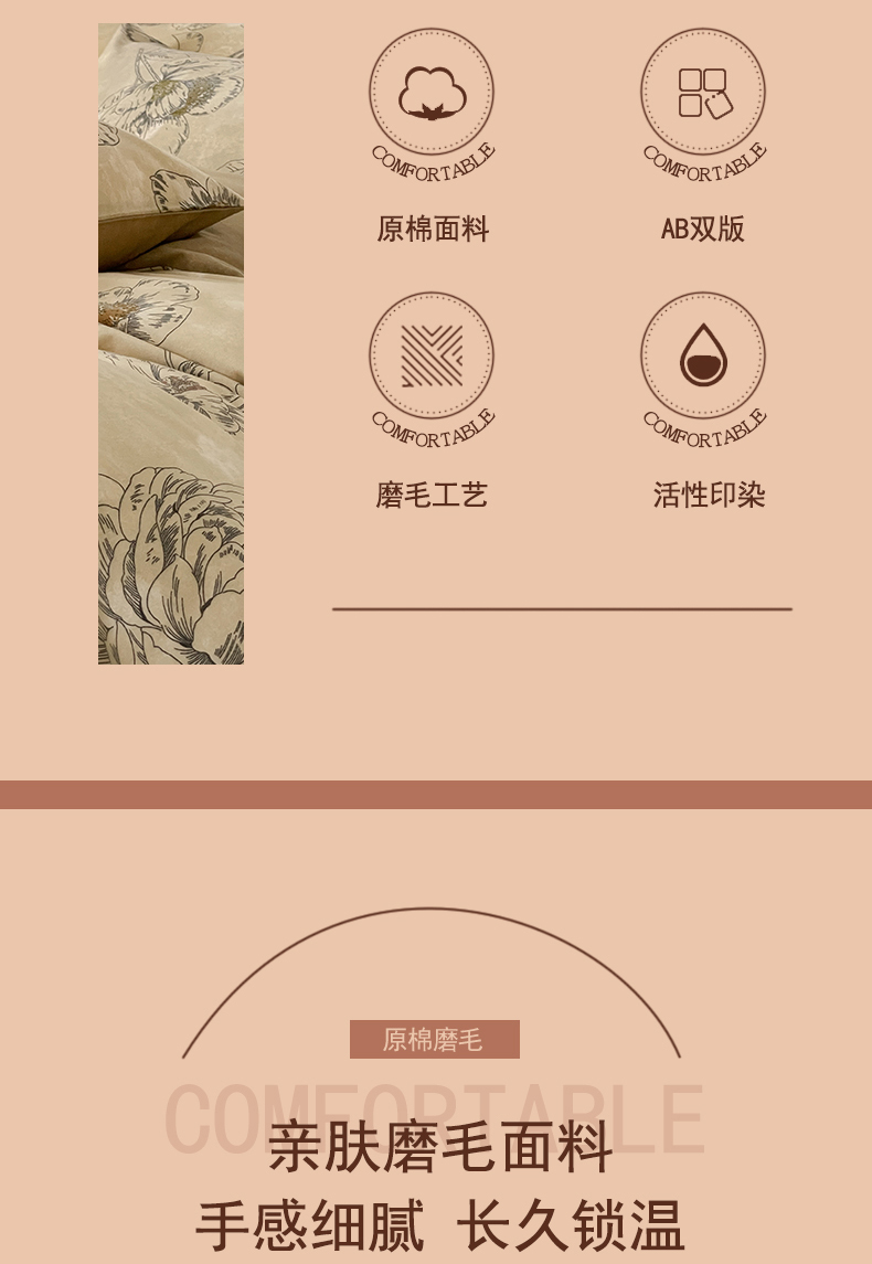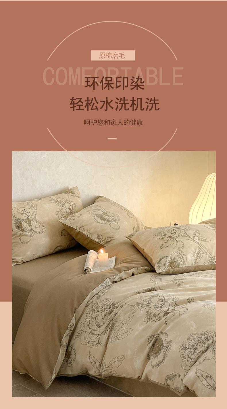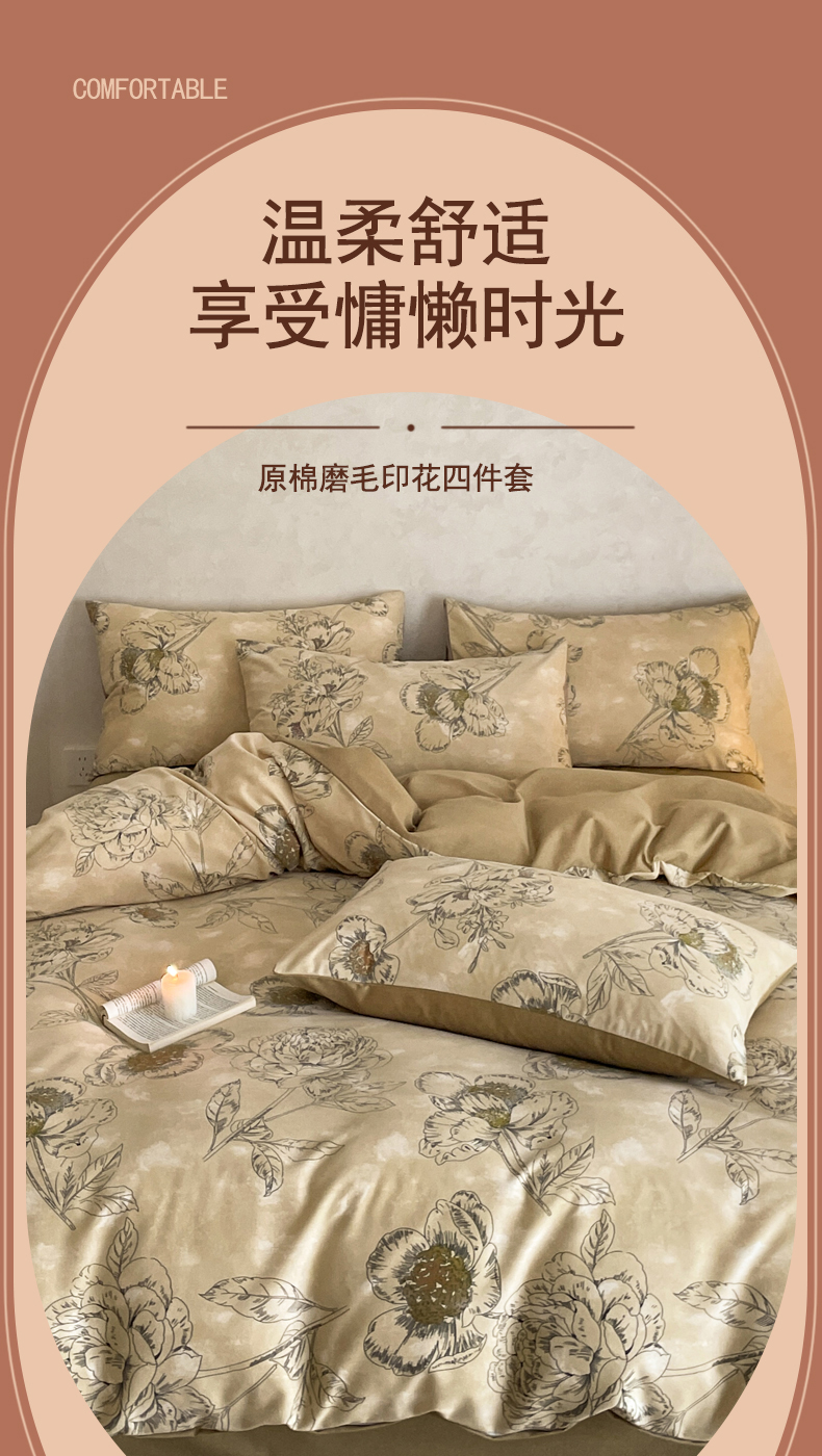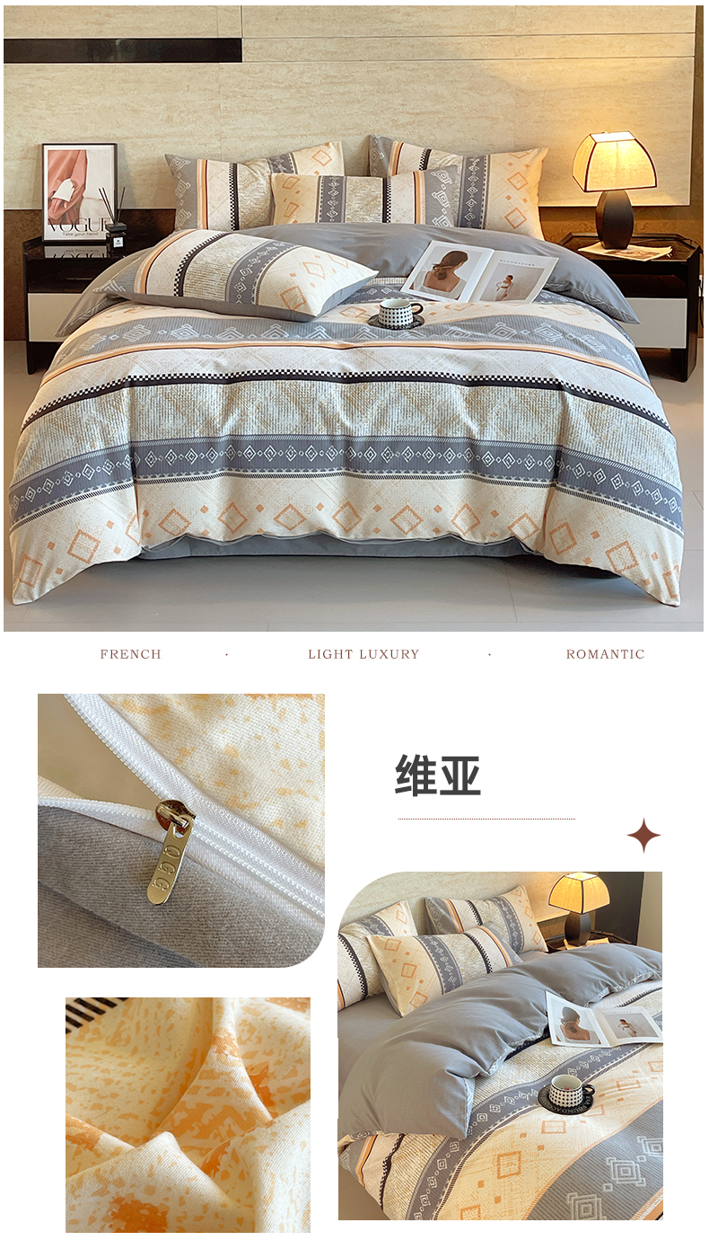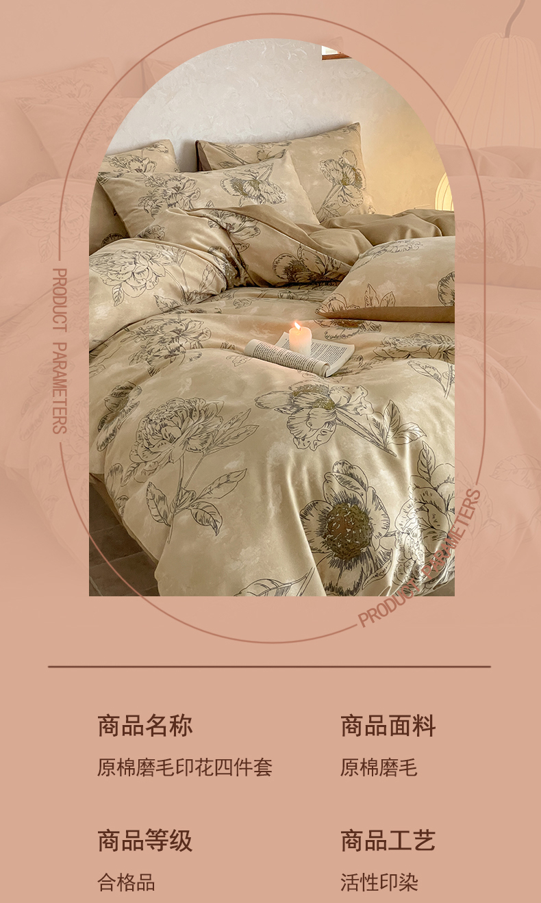 商品名称:琪格格纺织 2025新款磨毛印花四件套 素韵