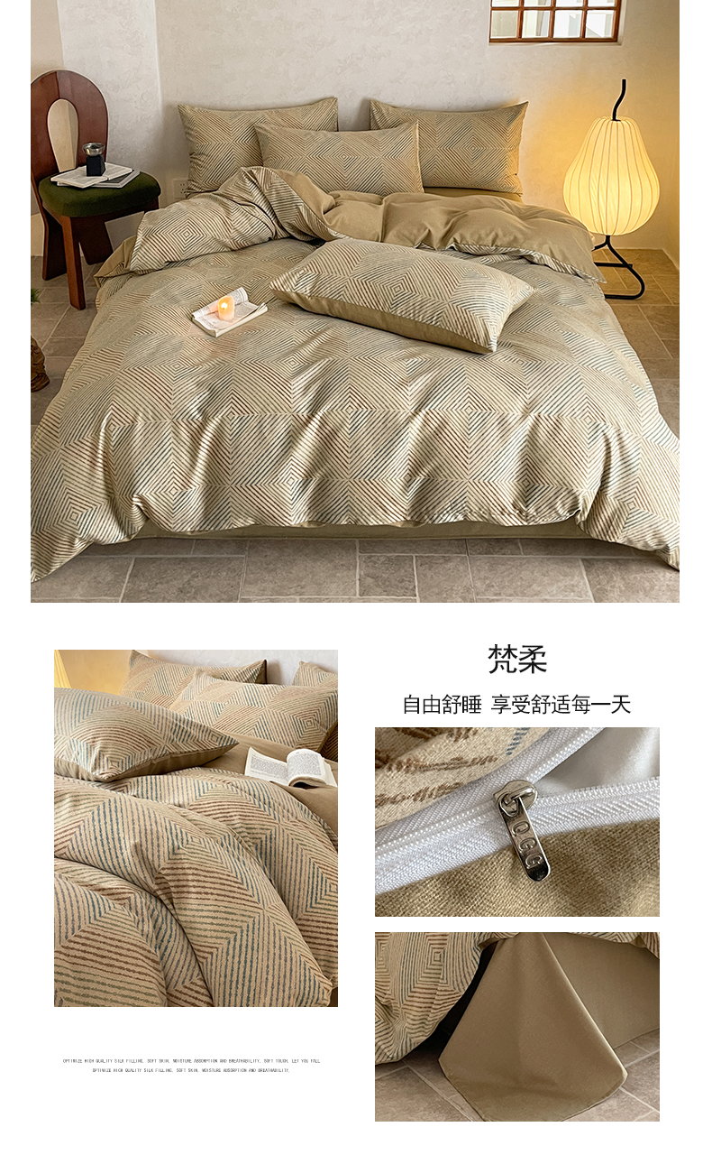 琪格格纺织 2025新款磨毛印花四件套 素韵