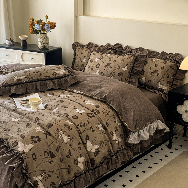 (总)梦纤绒 2026新款高克重法式复古亚麻花边款四件套,雾影,花梦,森屿,时光紫,晚风,雾漫