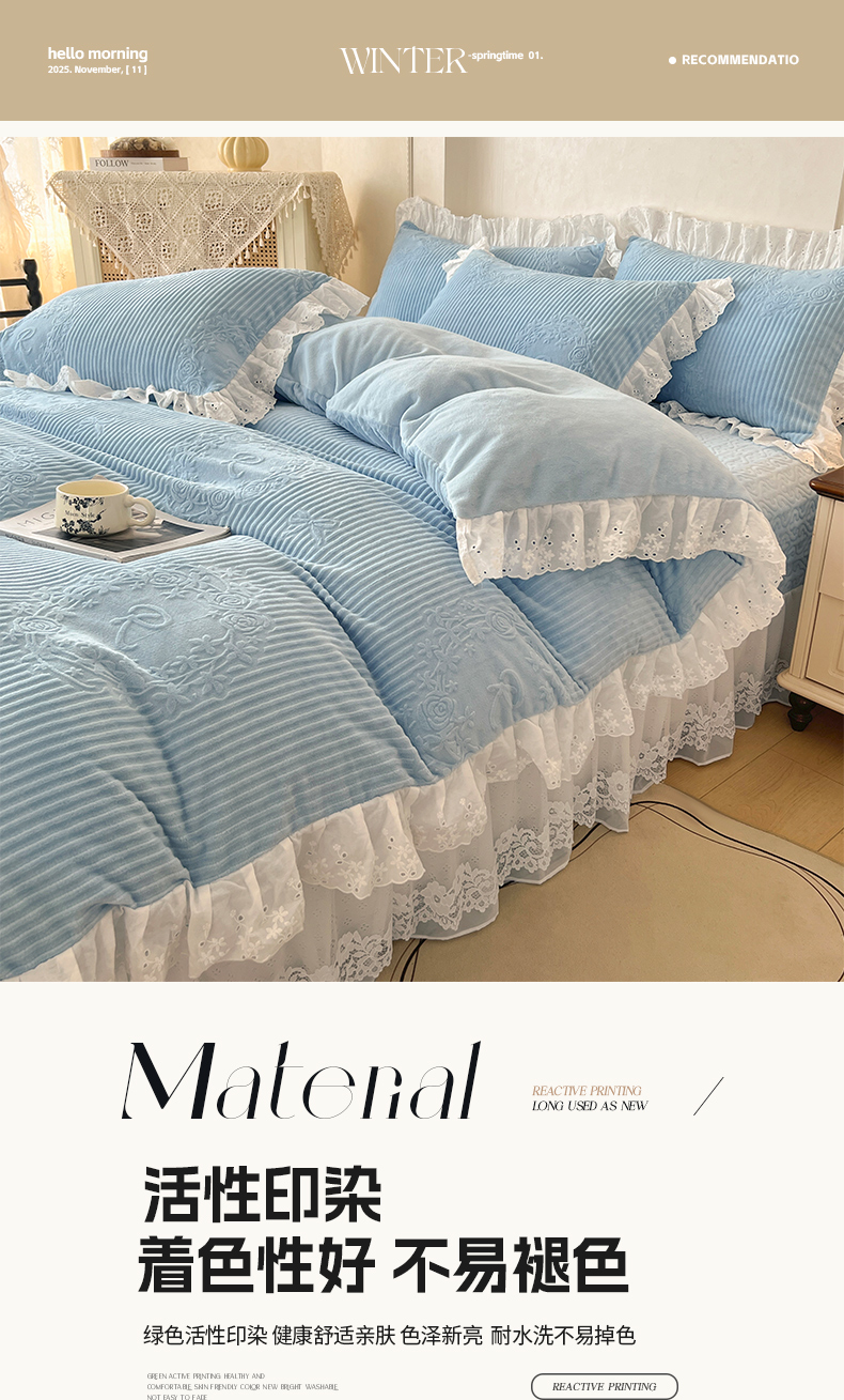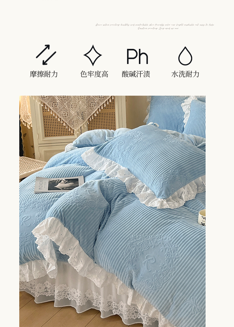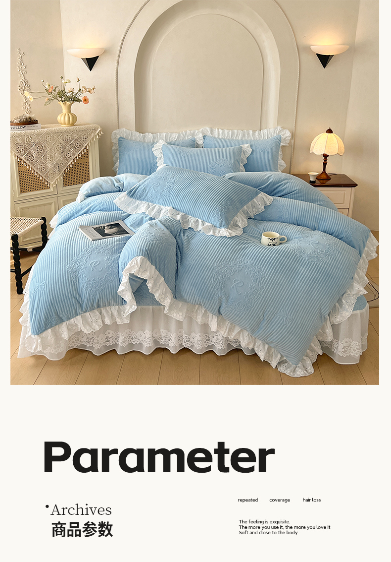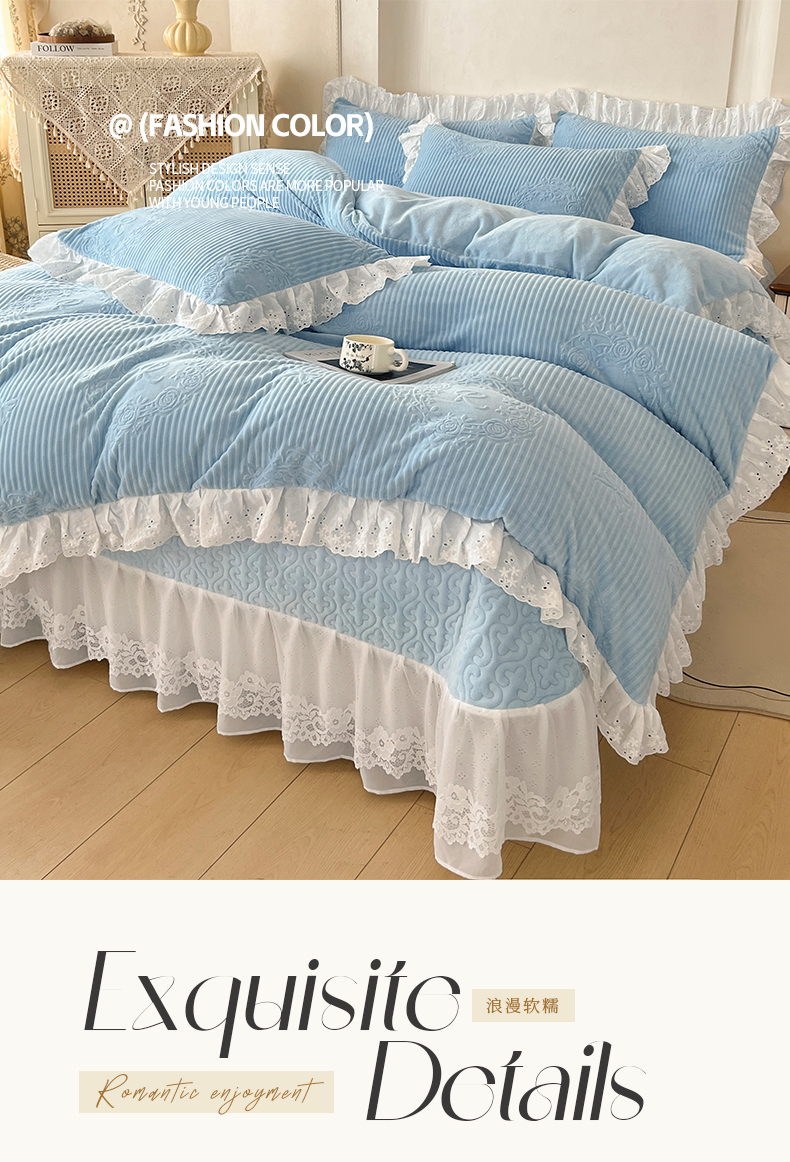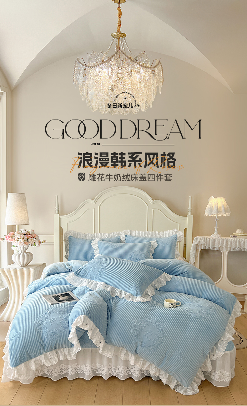 当前位置: 91家纺网 > 商品网购 > 床品套件 > 四件套 > 牛奶绒四件套 > 怡源梦 2025新款雕花牛奶绒床盖四件套-国色芳华系列 国色芳华-天空兰
