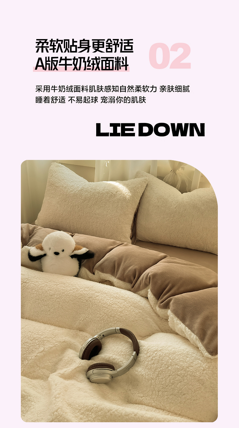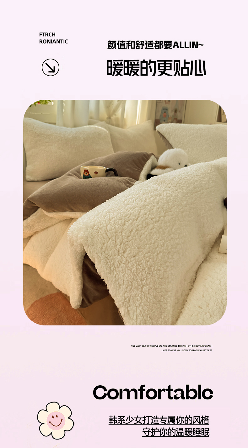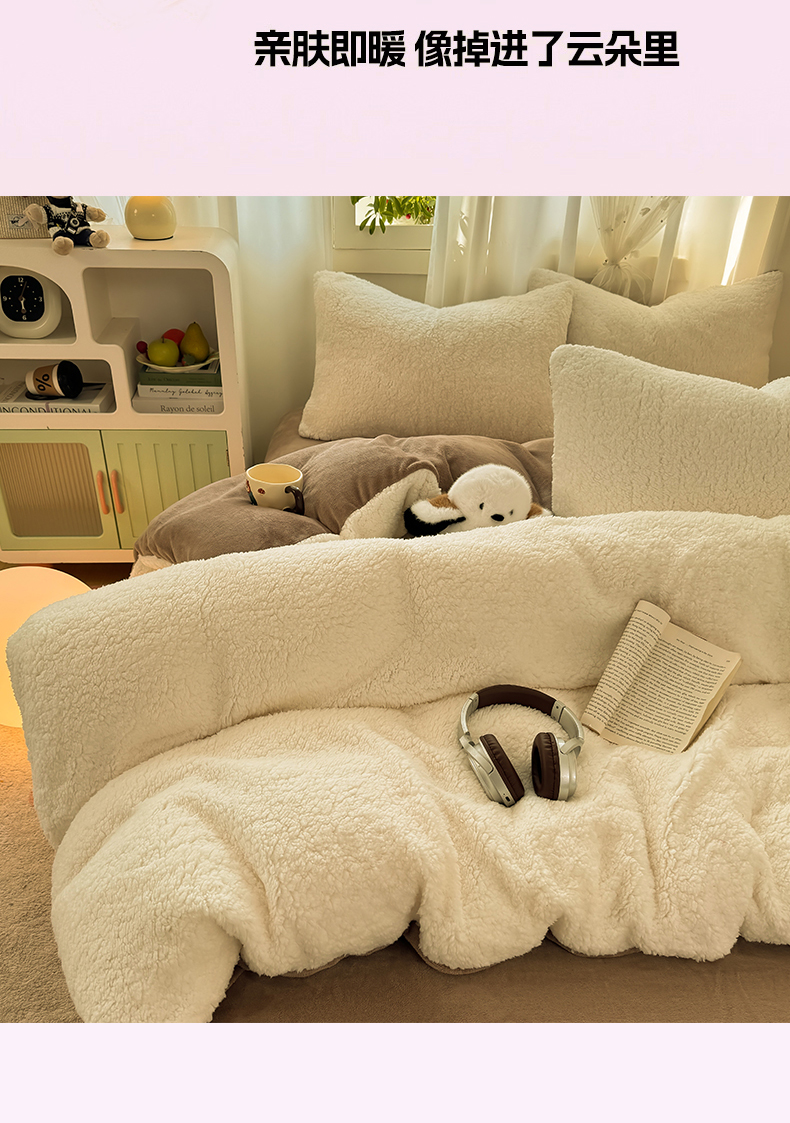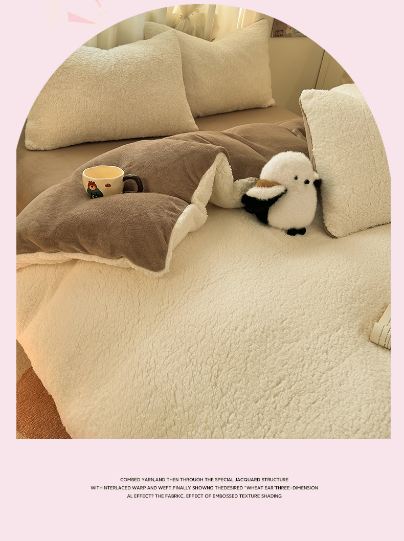 当前位置: 91家纺网 > 商品网购 > 床品套件 > 四件套 > 羊羔绒四件套 > 灰鲸 2025新款秋冬韩系牛奶羊羔绒四件套 羊羔-白咖