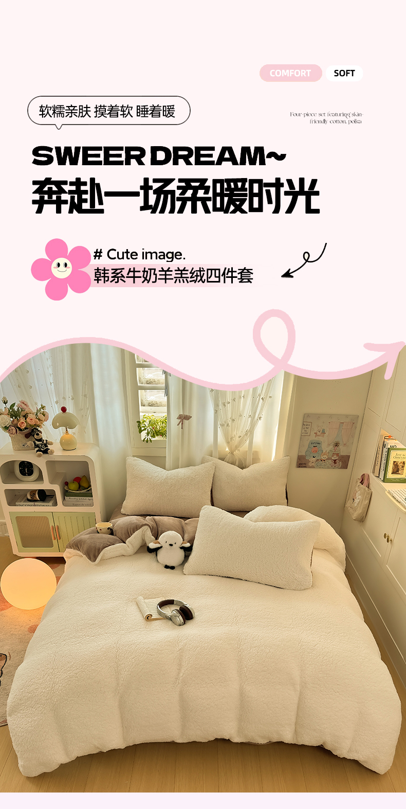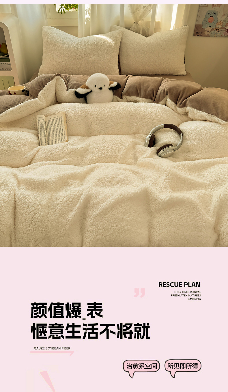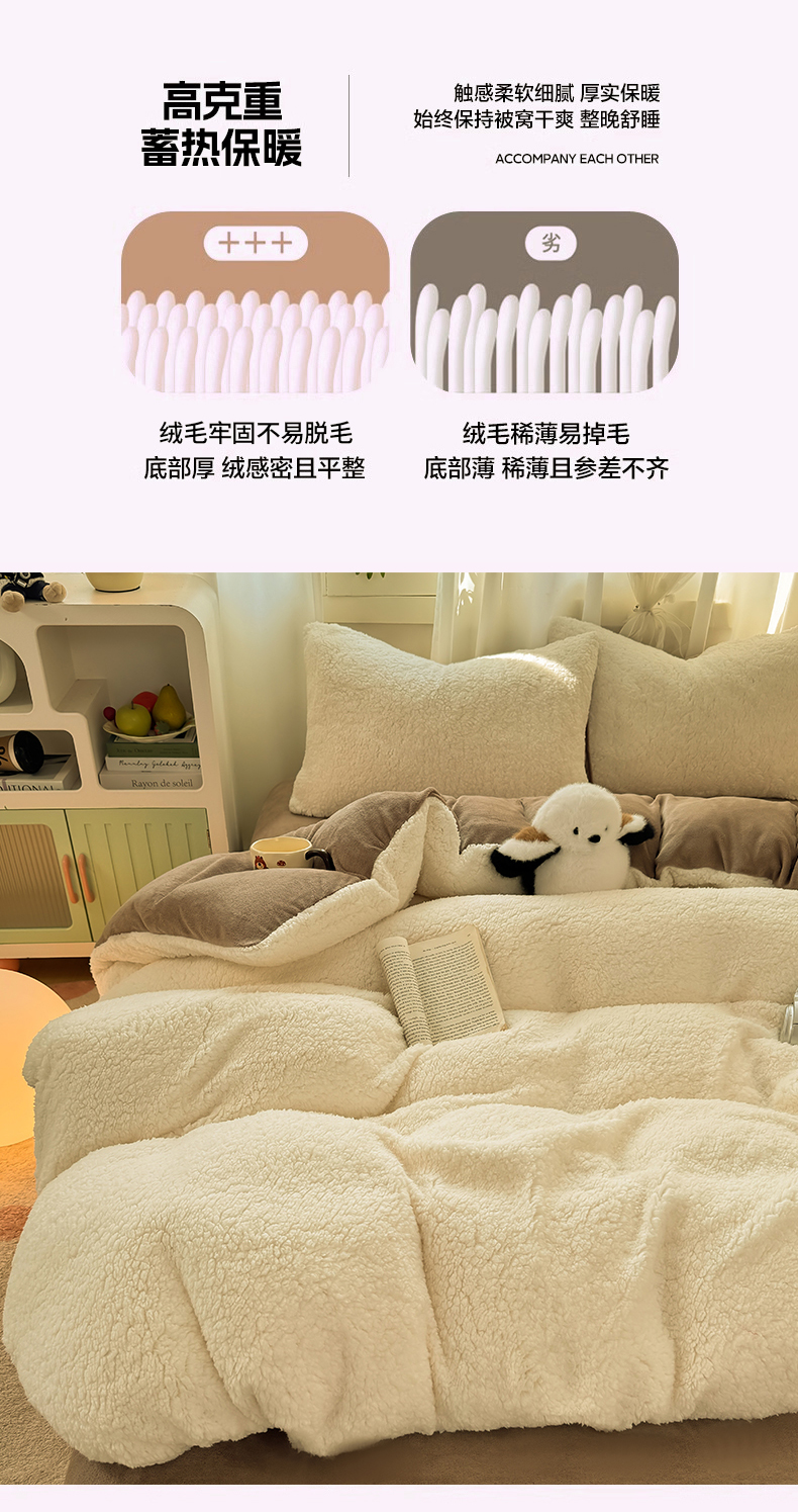 当前位置: 91家纺网 > 商品网购 > 床品套件 > 四件套 > 羊羔绒四件套 > 灰鲸 2025新款秋冬韩系牛奶羊羔绒四件套 羊羔-白咖