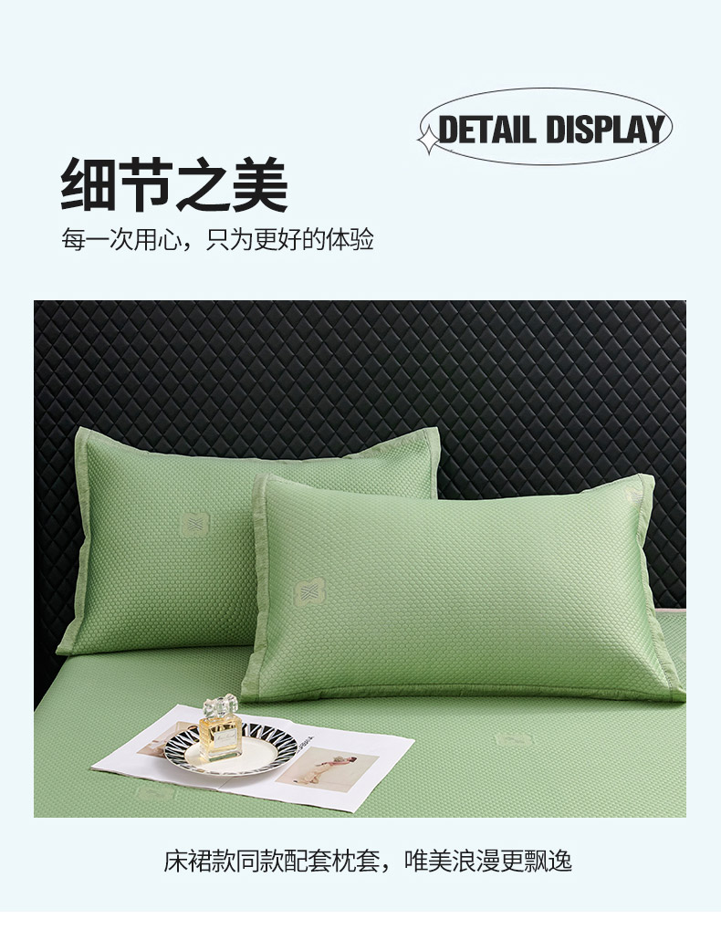 商品名称:梵克保罗 2025新款凉感因子母婴级凉感丝豆豆席床裙款 床裙香奈儿-蓝