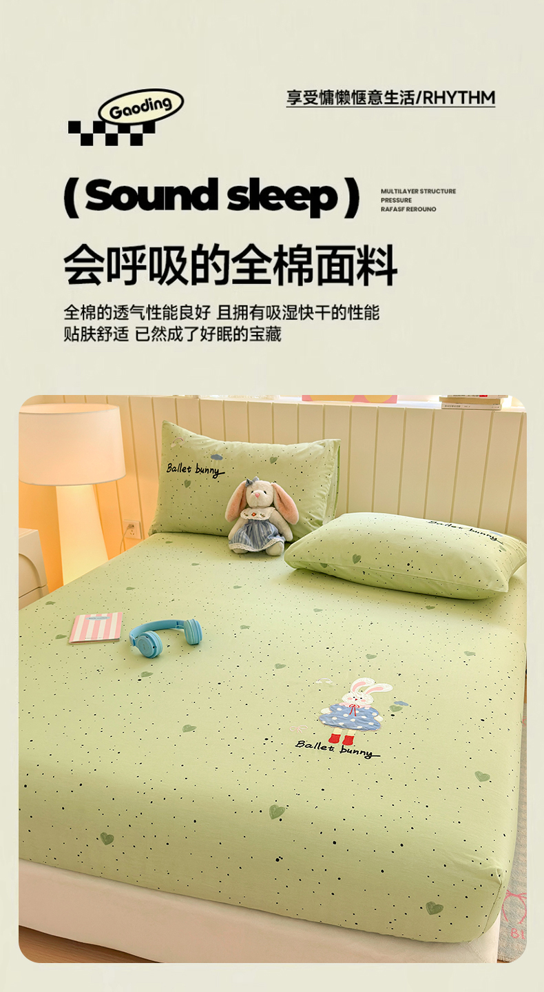(总)娜娜 2025新款全棉夹棉多功能床盖,爱心绿免(全棉床盖),快乐女孩粉(全棉床盖),小飞象(全棉床盖),樱桃粉兔(全棉床盖),组合