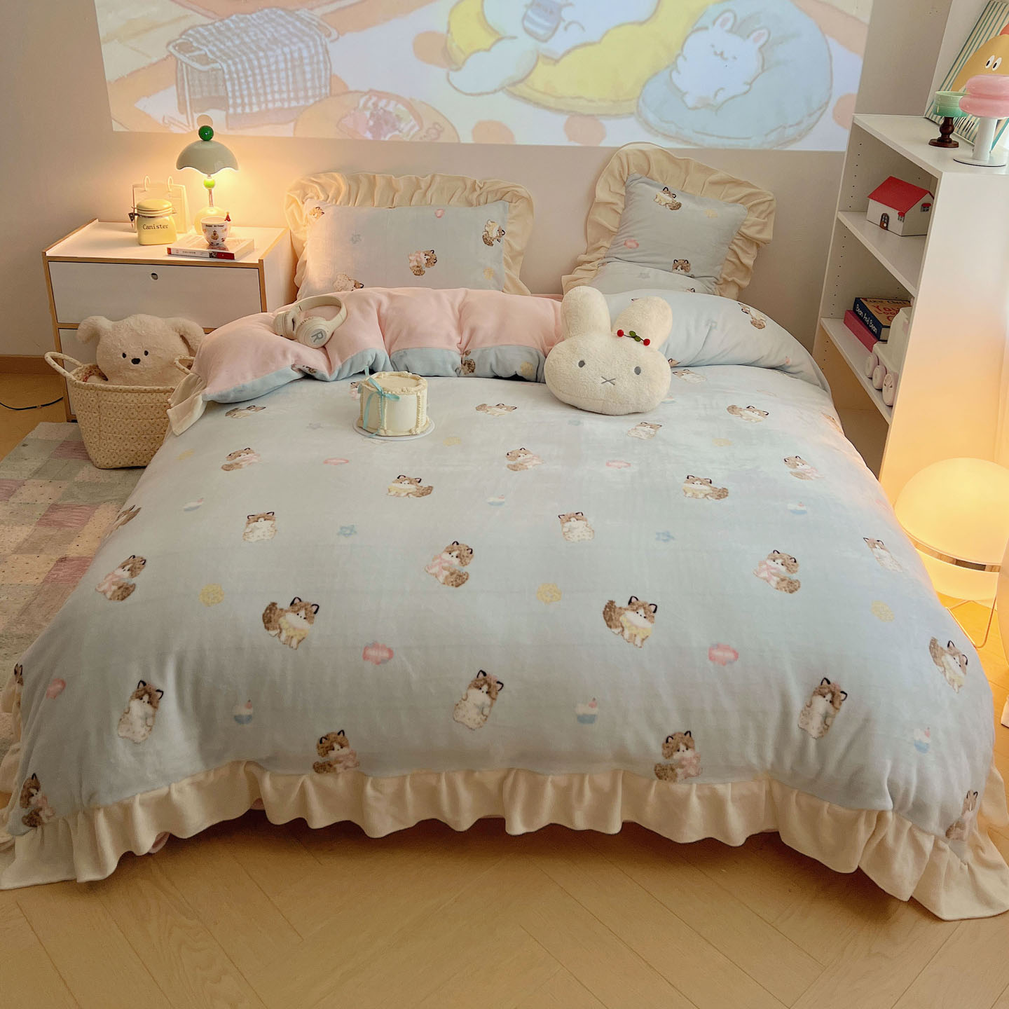 当前位置: 91家纺网 > 商品网购 > 床品套件 > 四件套 > 水晶绒四件套 > 桃喜 2025新款牛奶绒卡通花边款四件套 狗狗聚会花边款