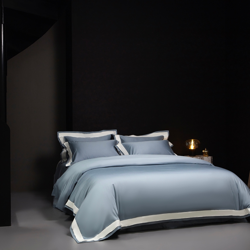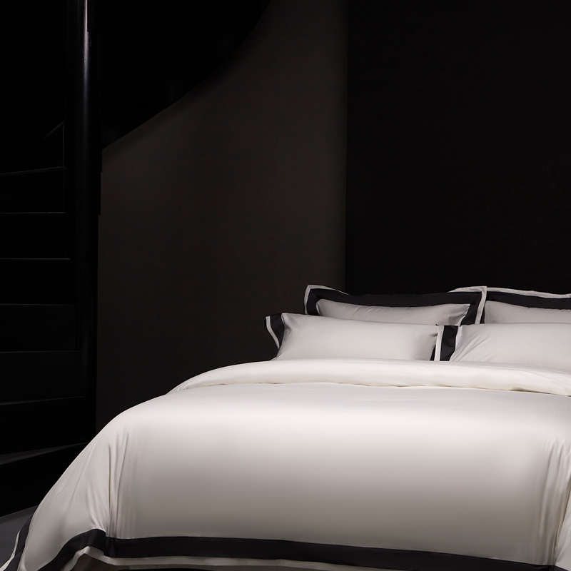 南泉坊 2025新款亲肤舒适全棉纯棉长绒棉双层荷叶边撞色四件套-休斯顿 休斯顿-雪峰白
