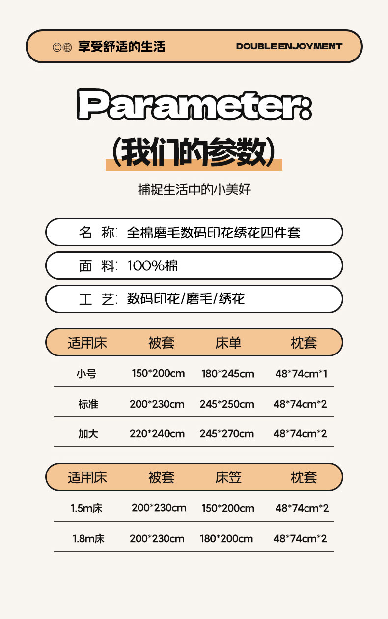 【床笠款】1.8四件套-被套220x240 | ¥170.00 |