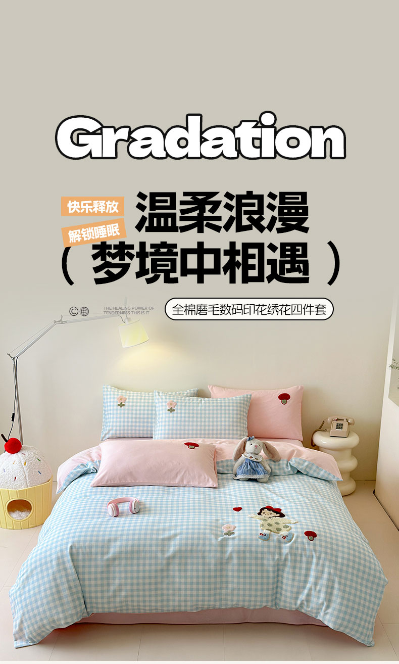 当前位置: 91家纺网 > 商品网购 > 床品套件 > 四件套 > 全棉普通四件套 > 锦觅 2025秋冬A类数码印花全棉纯棉磨毛绣花保暖四件套 可爱女孩