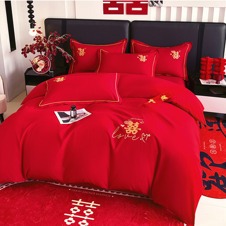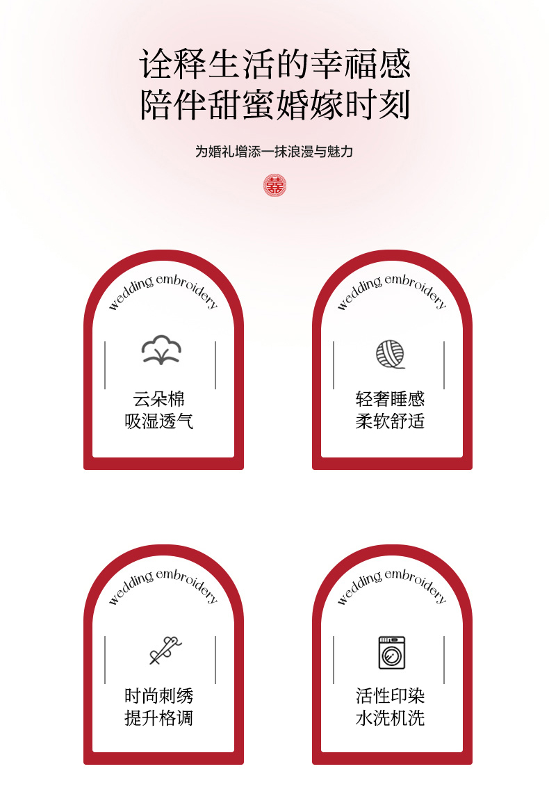 当前位置: 91家纺网 > 商品网购 > 床品套件 > 四件套 > 婚庆四件套 > 艾橙家纺 2025新款大红云朵棉刺绣婚庆系列四件套 百年好和
