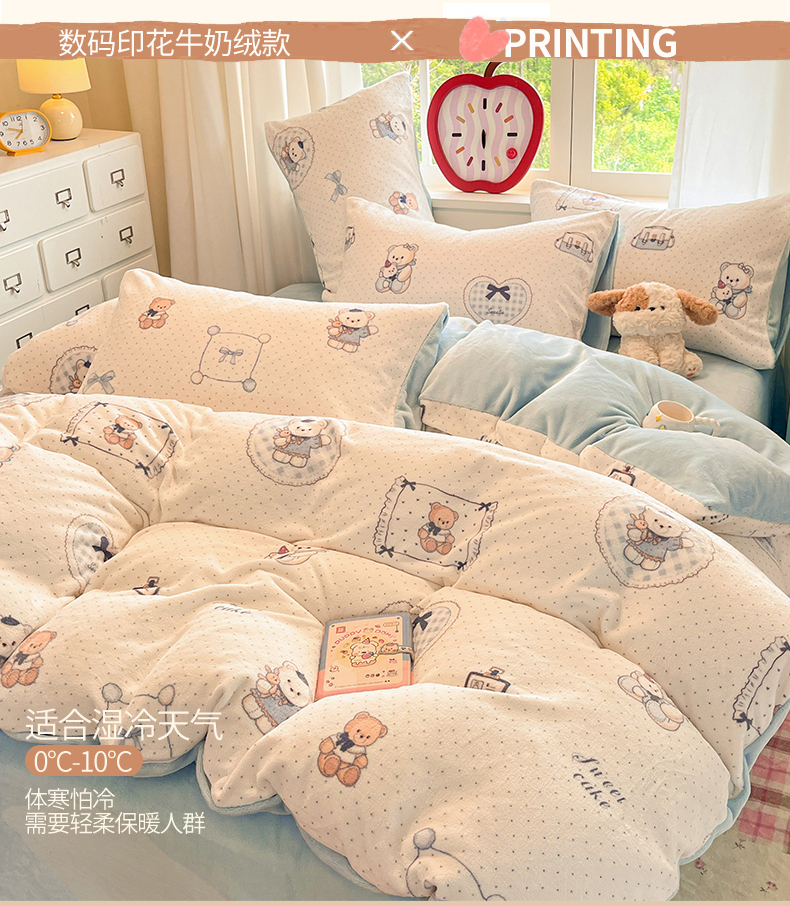商品名称:(总)云棉坊 2025新款高克重卡通牛奶绒四件套-印花系列