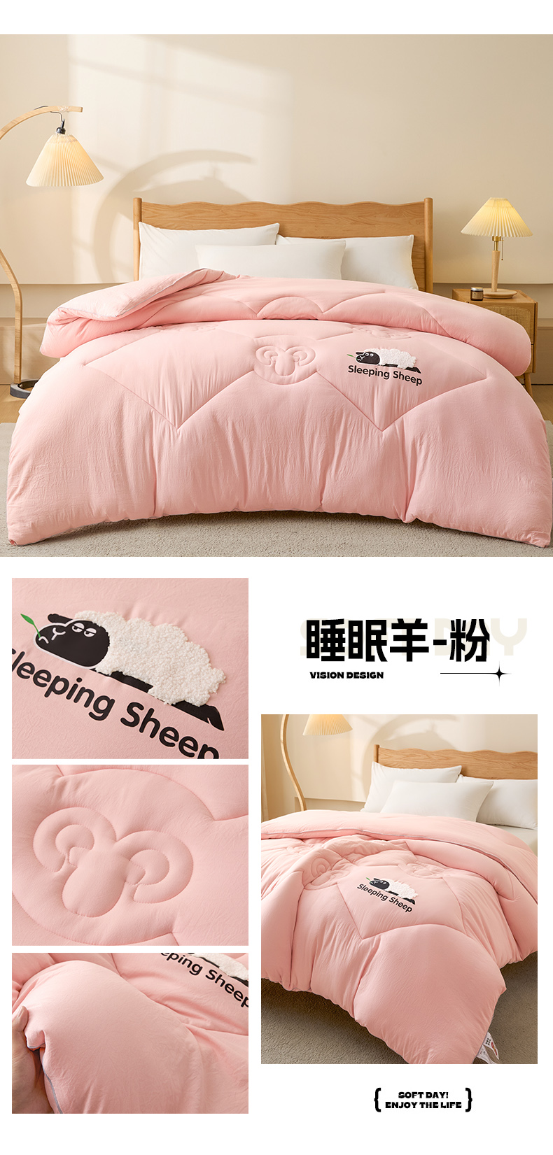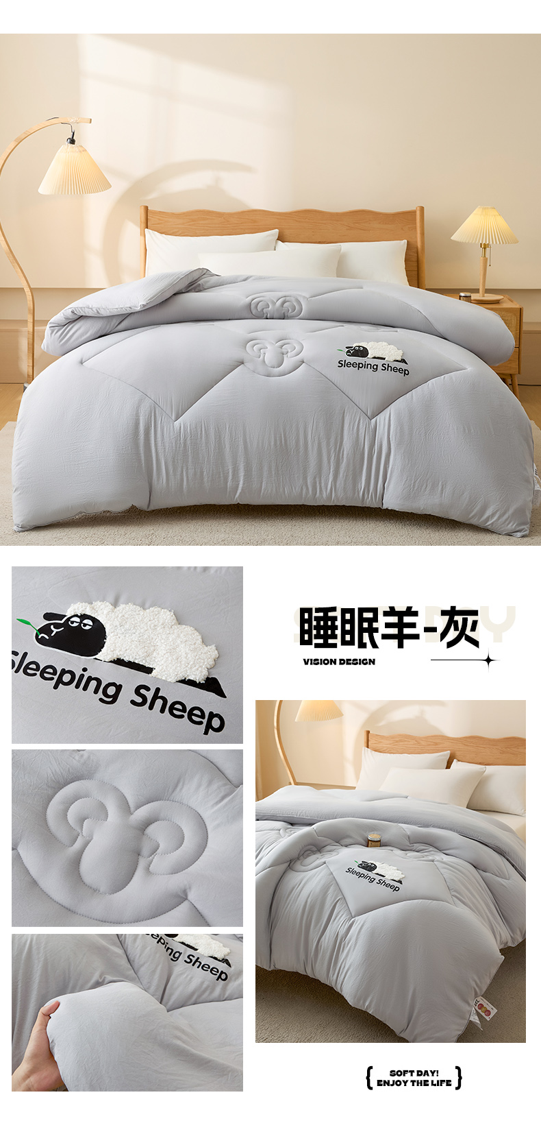(总)鑫琪莱家纺 2025新款A类鄂尔多斯羊毛被子被芯,睡眠羊-白,睡眠羊-灰,睡眠羊-粉