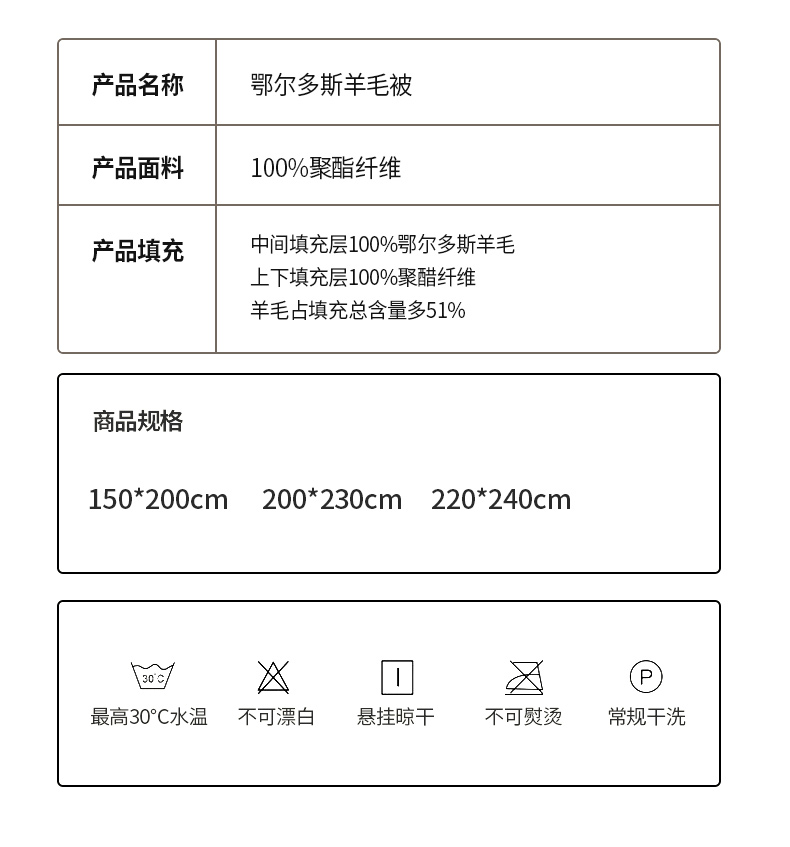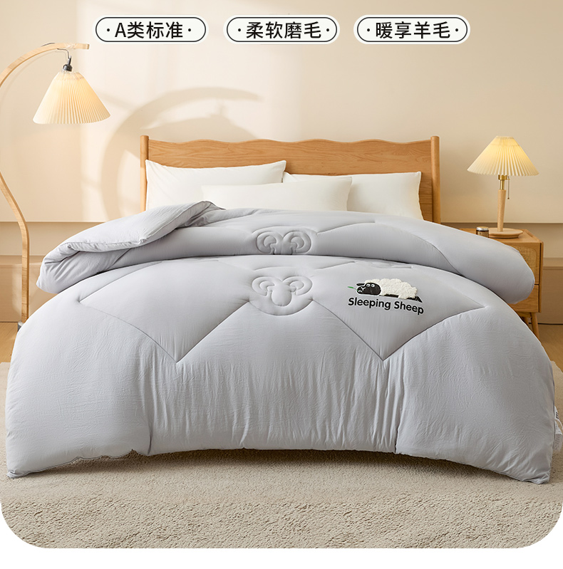 商品名称:鑫琪莱家纺 2025新款A类鄂尔多斯羊毛被子被芯 睡眠羊-灰