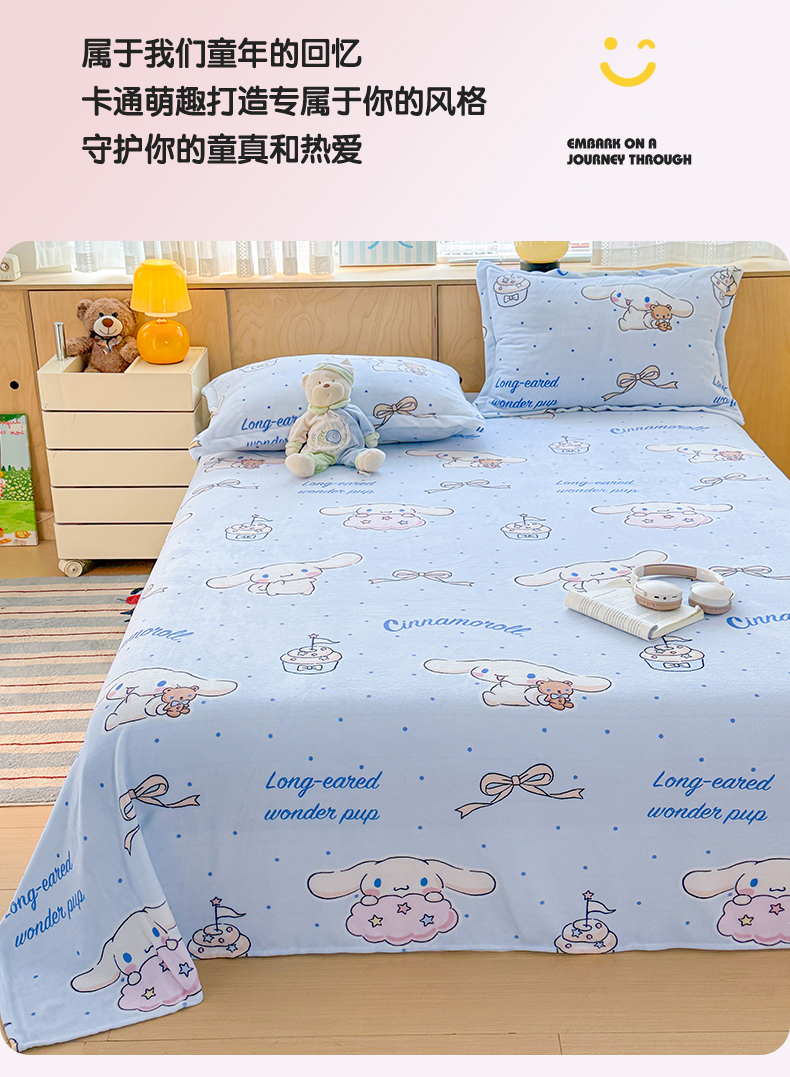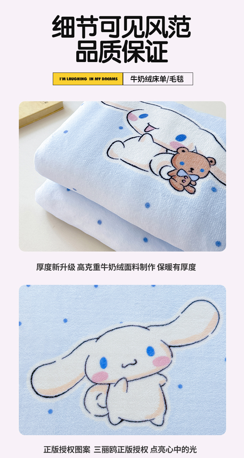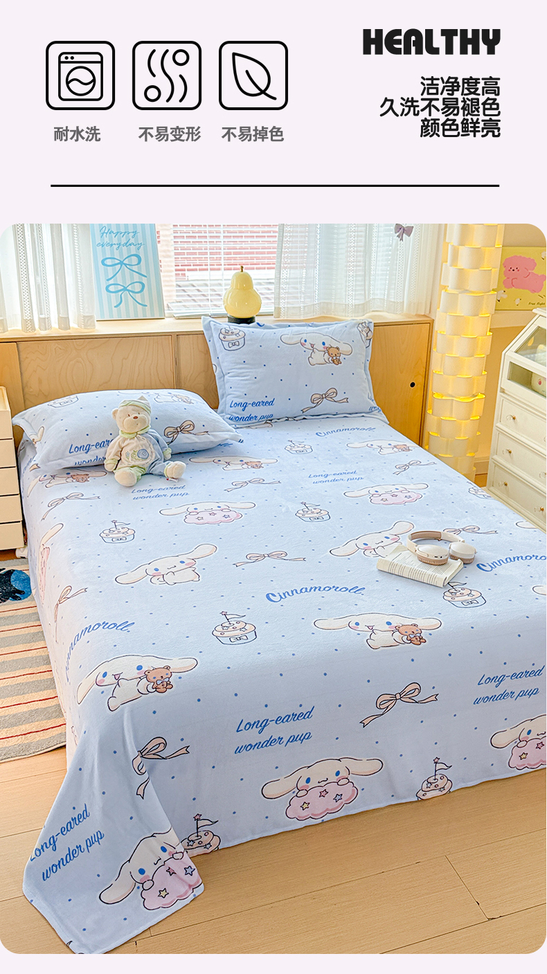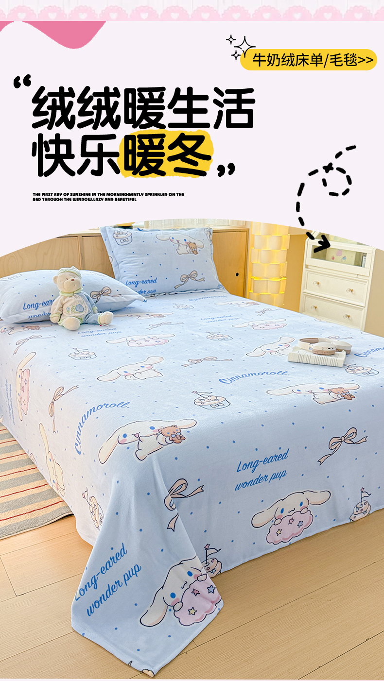 名兮家居 2025新款经典奥特曼-三丽鸥高克重牛奶绒床单 甜品大耳狗