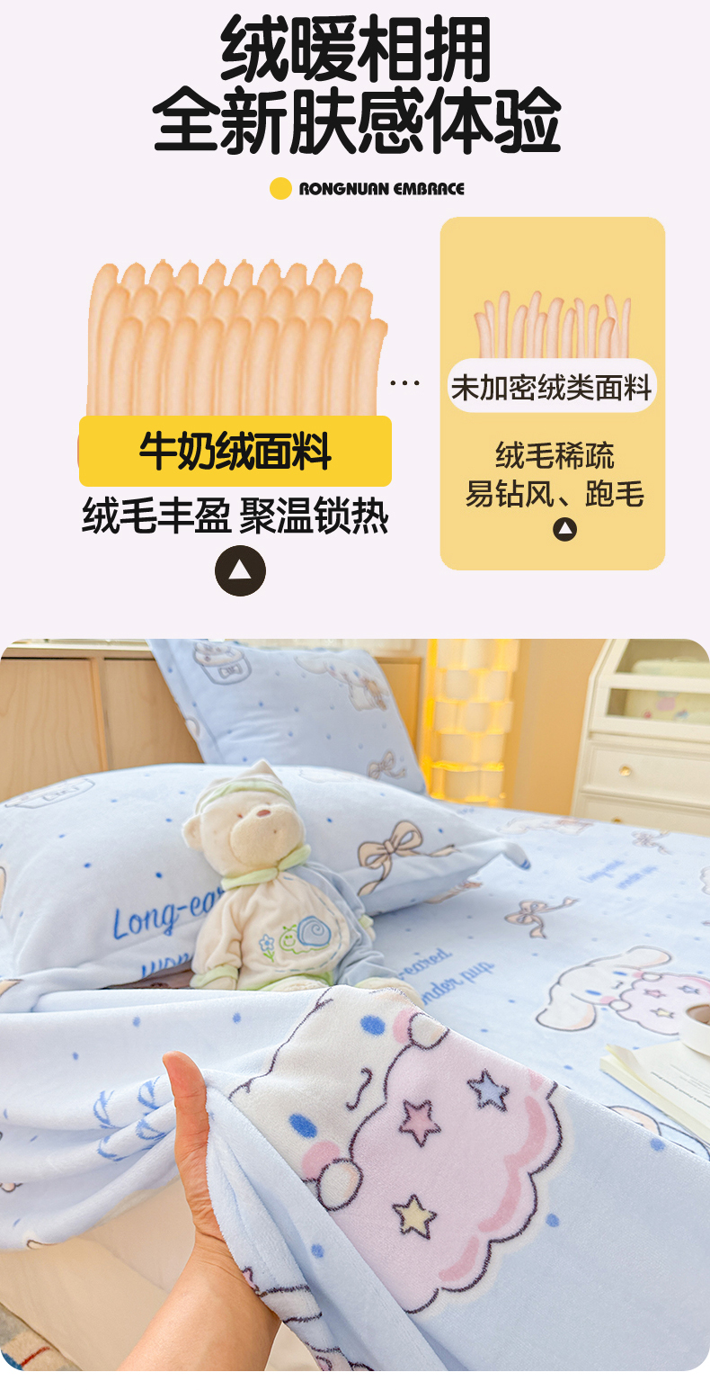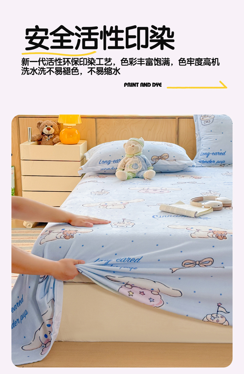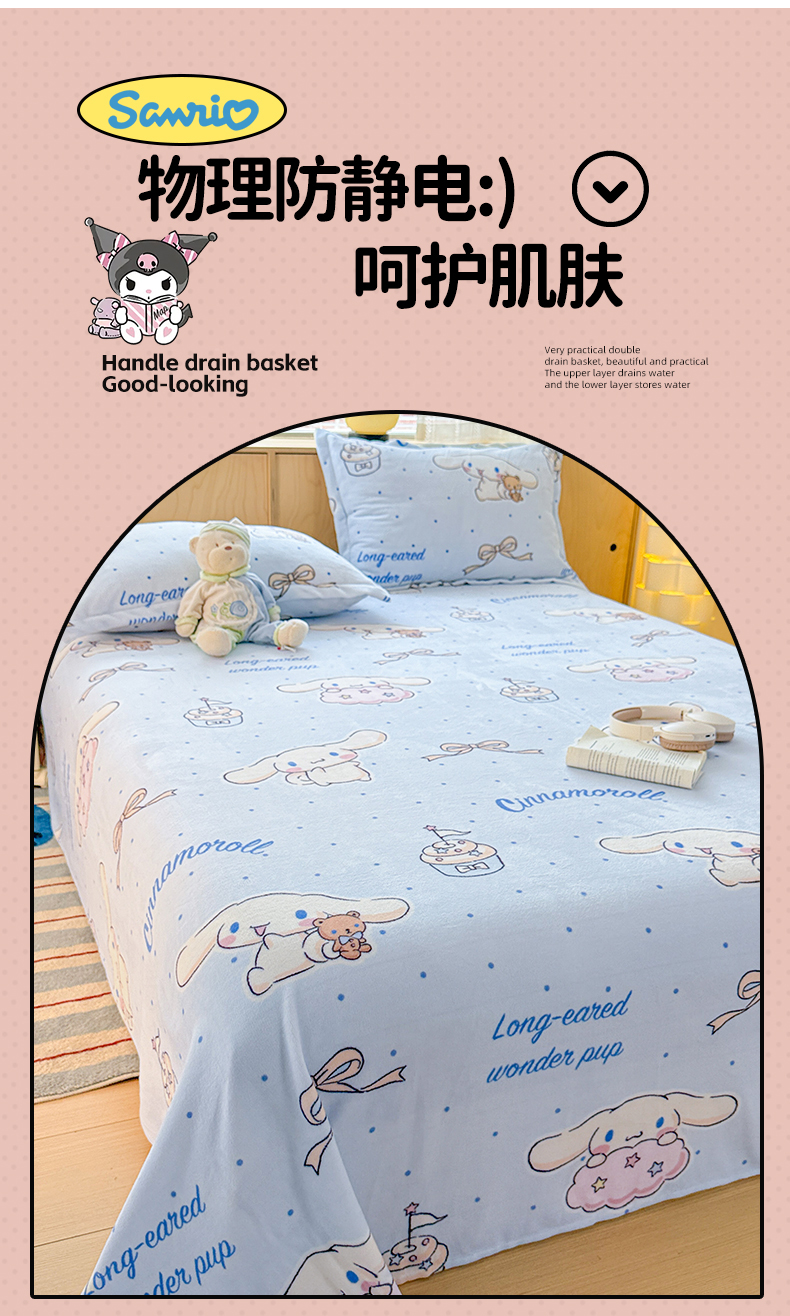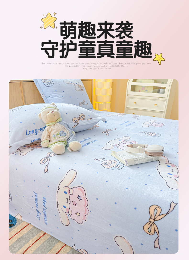 名兮家居 2025新款经典奥特曼-三丽鸥高克重牛奶绒床单 甜品大耳狗
