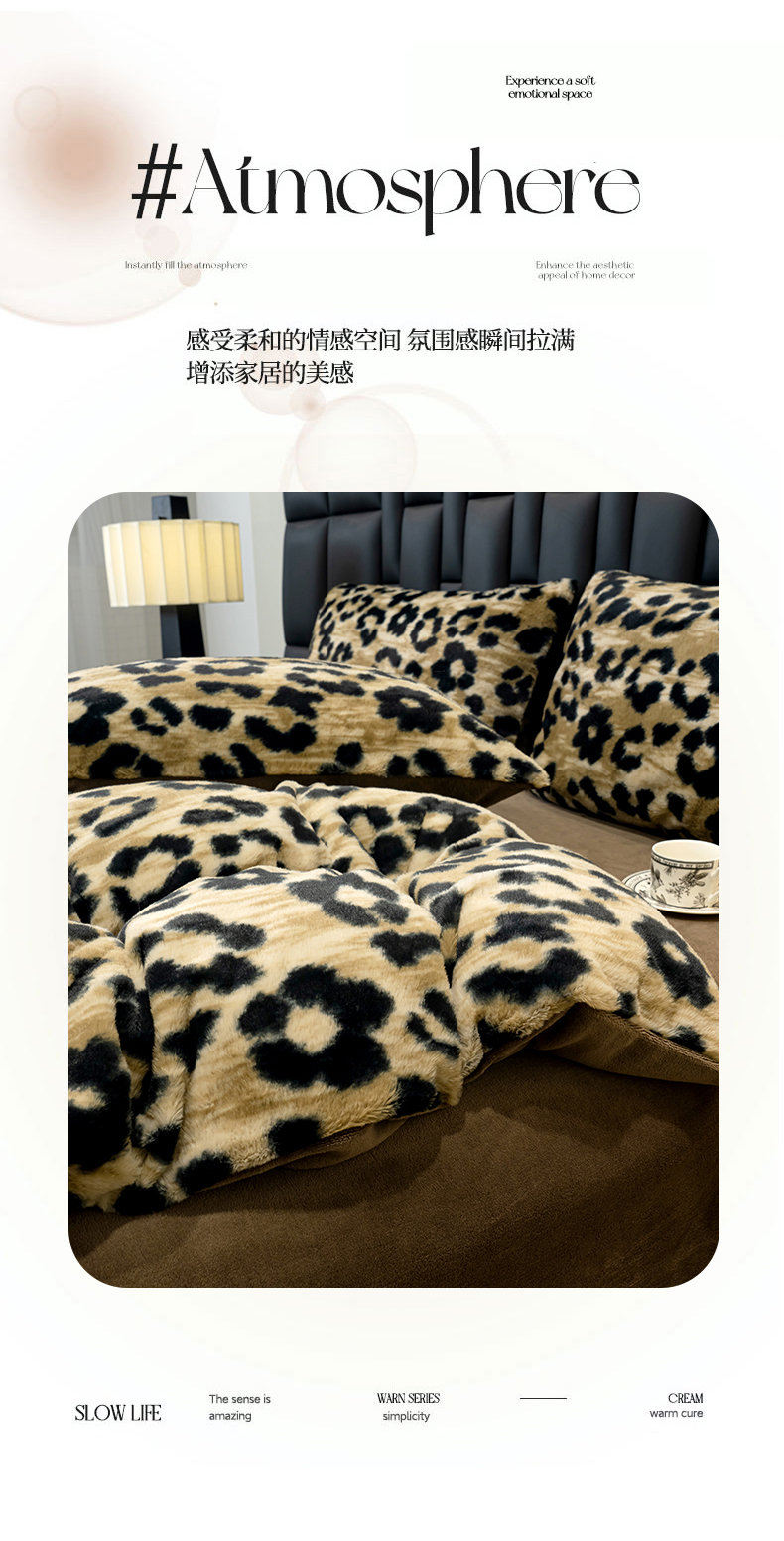 当前位置: 91家纺网 > 商品网购 > 床品套件 > 四件套 > 牛奶绒四件套 > 元禾家纺 2025新款法式美拉德高克重兔毛床盖款四件套兔毛简单款 豹纹咖