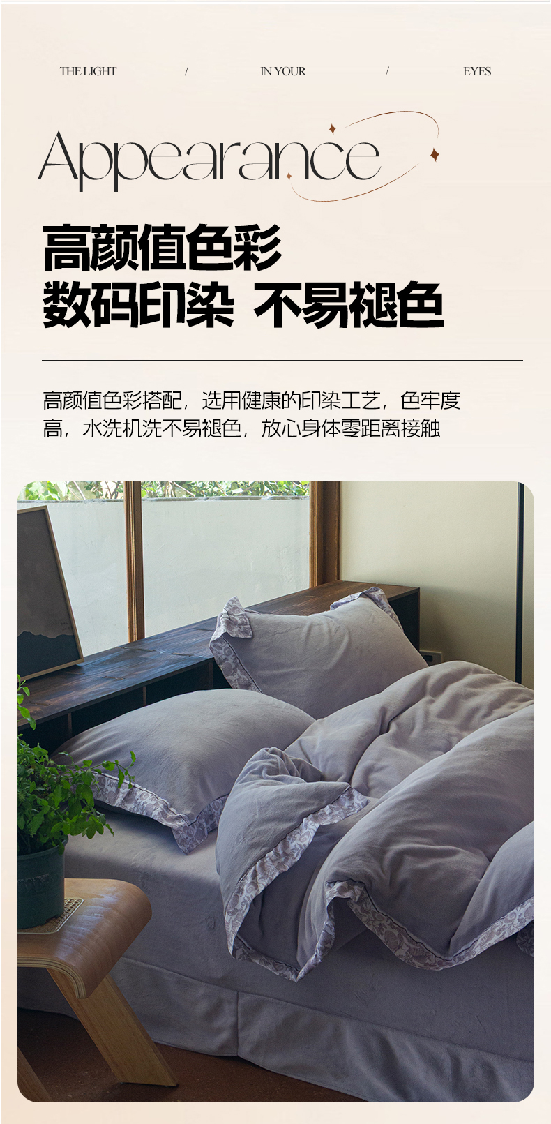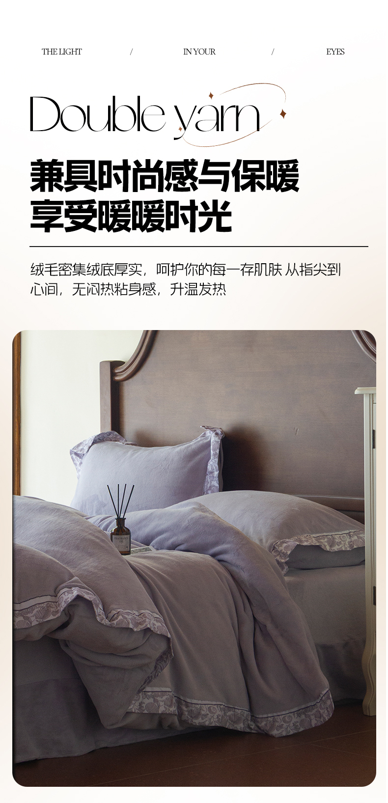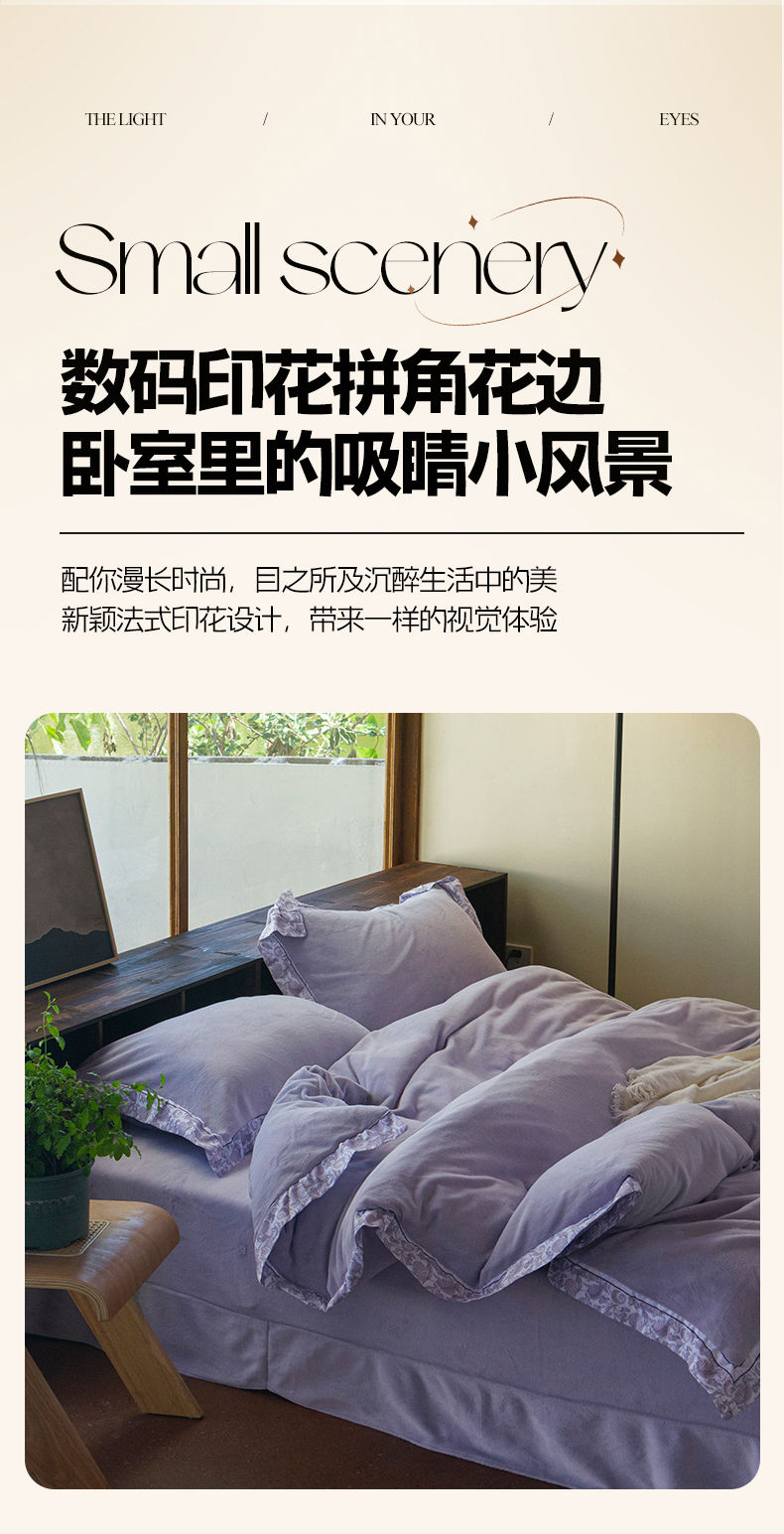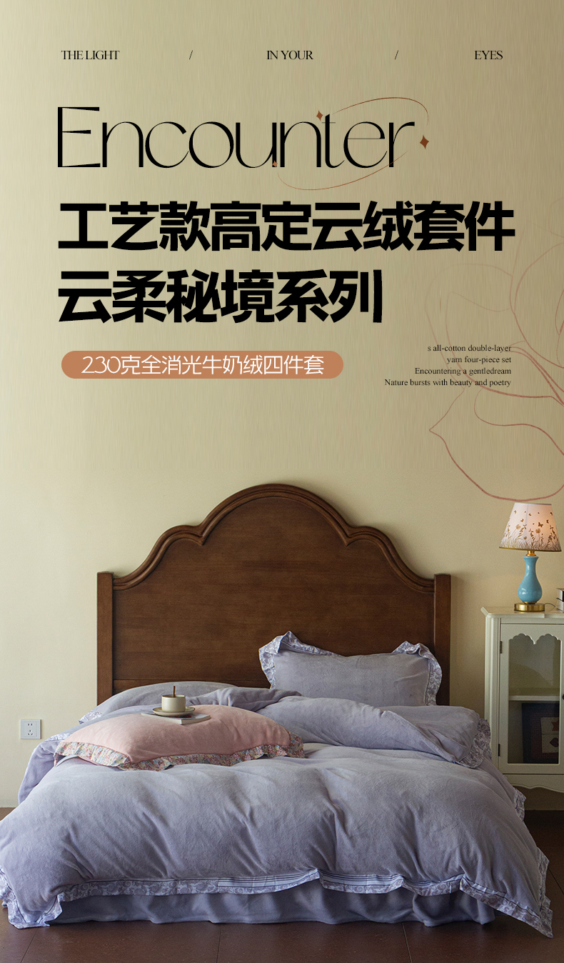 当前位置: 91家纺网 > 商品网购 > 床品套件 > 四件套 > 牛奶绒四件套 > 绒梦里 2025新款高克重全消光工艺款高定云绒牛奶绒四件套云柔秘境 云柔秘境-紫