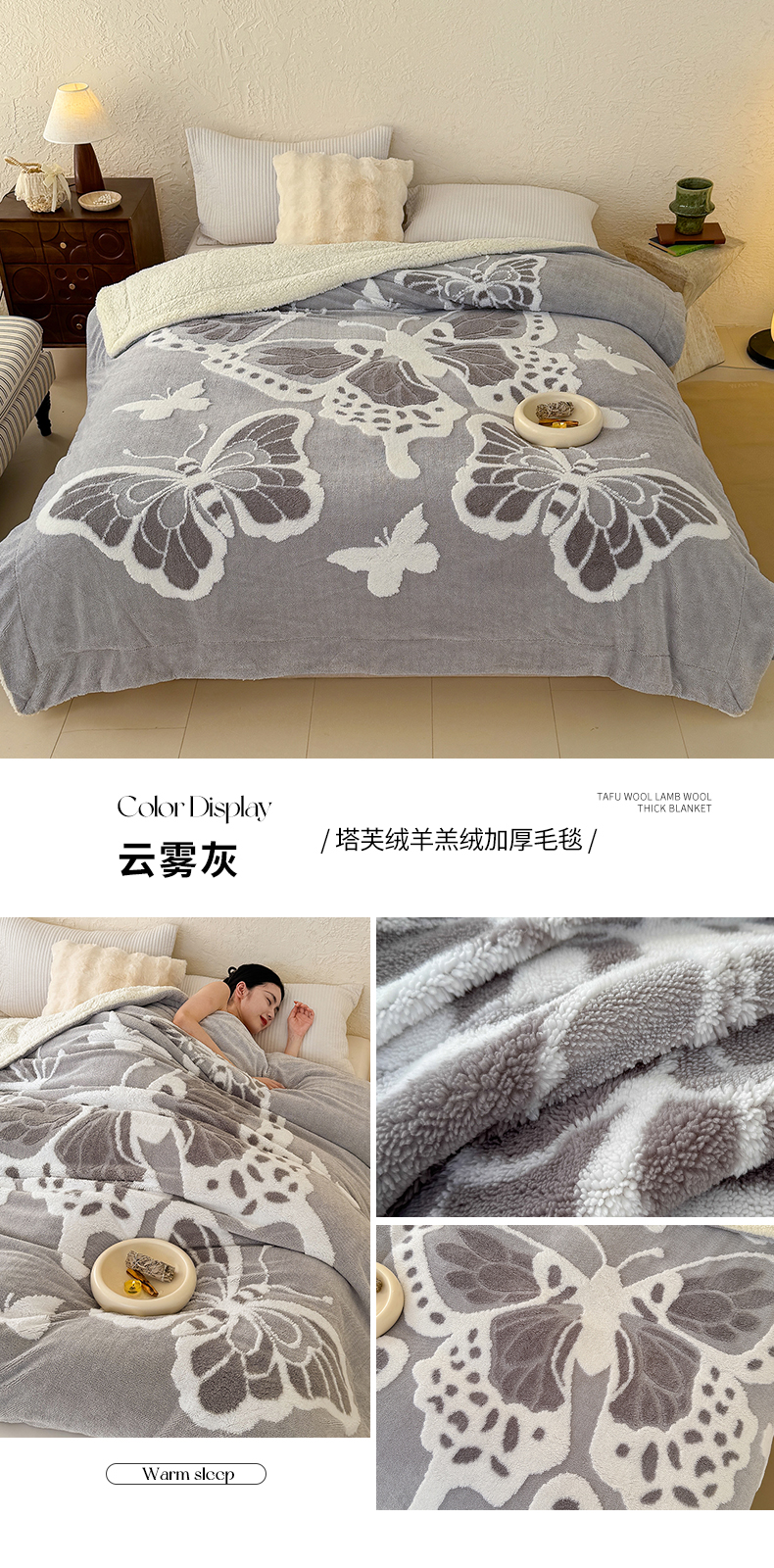 (总)枋梢家纺跨境电商 2024蝴蝶花塔芙绒羊羔绒毛毯加厚保暖毛毯,蝴蝶-豆沙,蝴蝶-果绿,蝴蝶-咖啡,蝴蝶-米白,蝴蝶-深灰,蝴蝶-驼色,蝴蝶-雾蓝,蝴蝶-香芋紫,蝴蝶-银灰