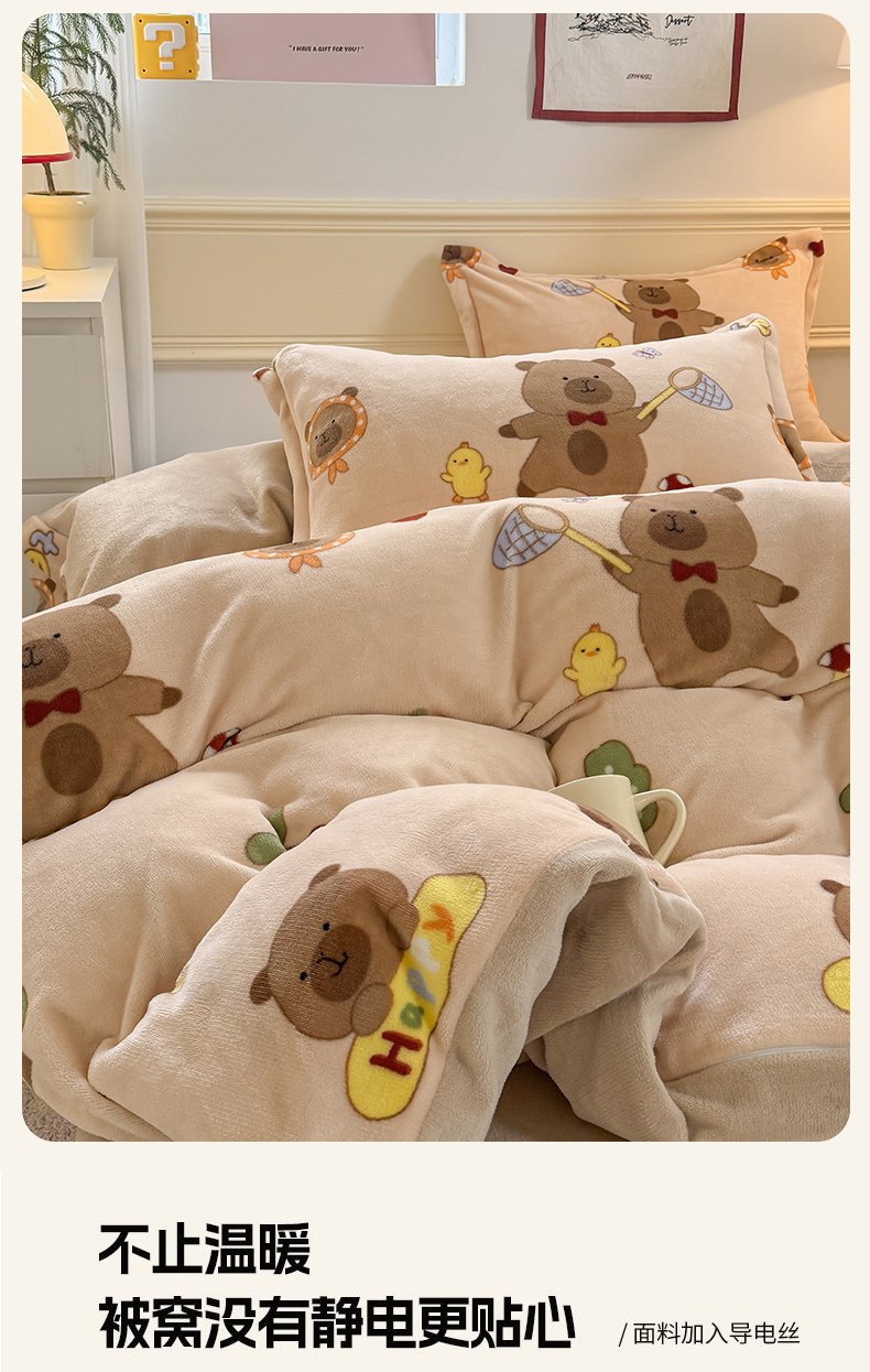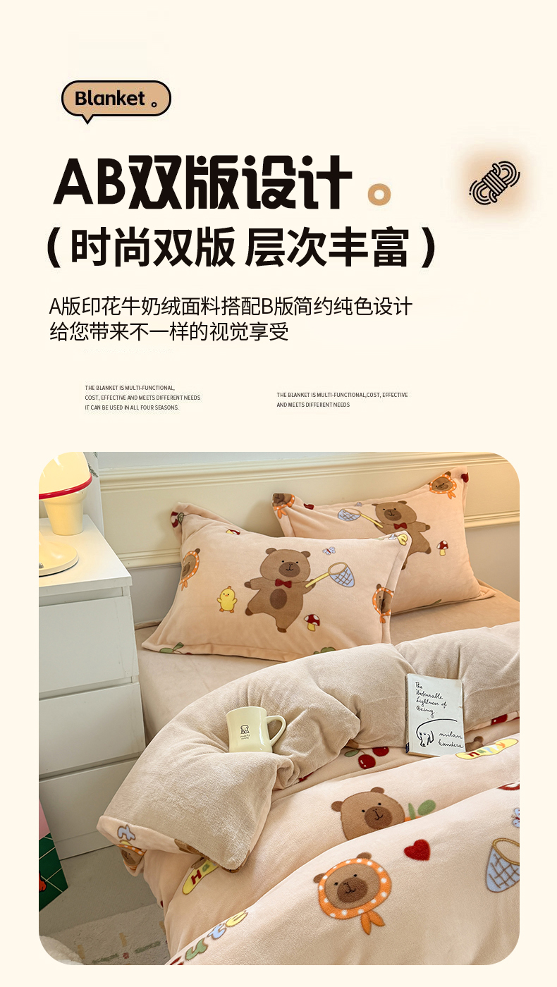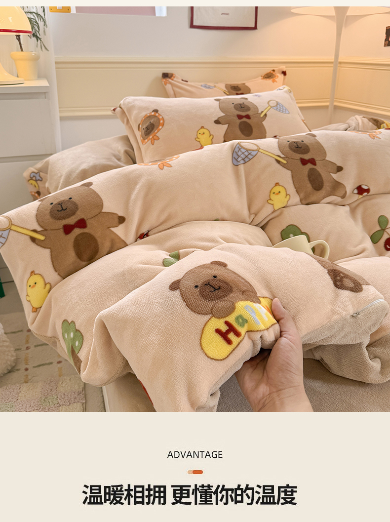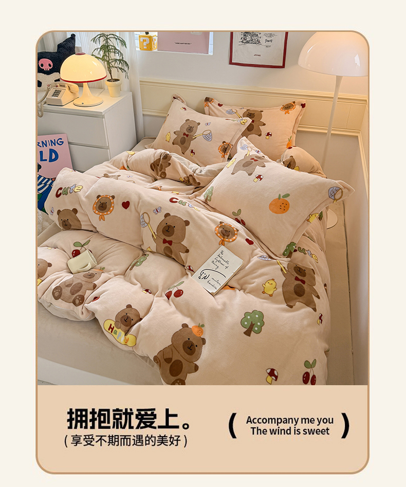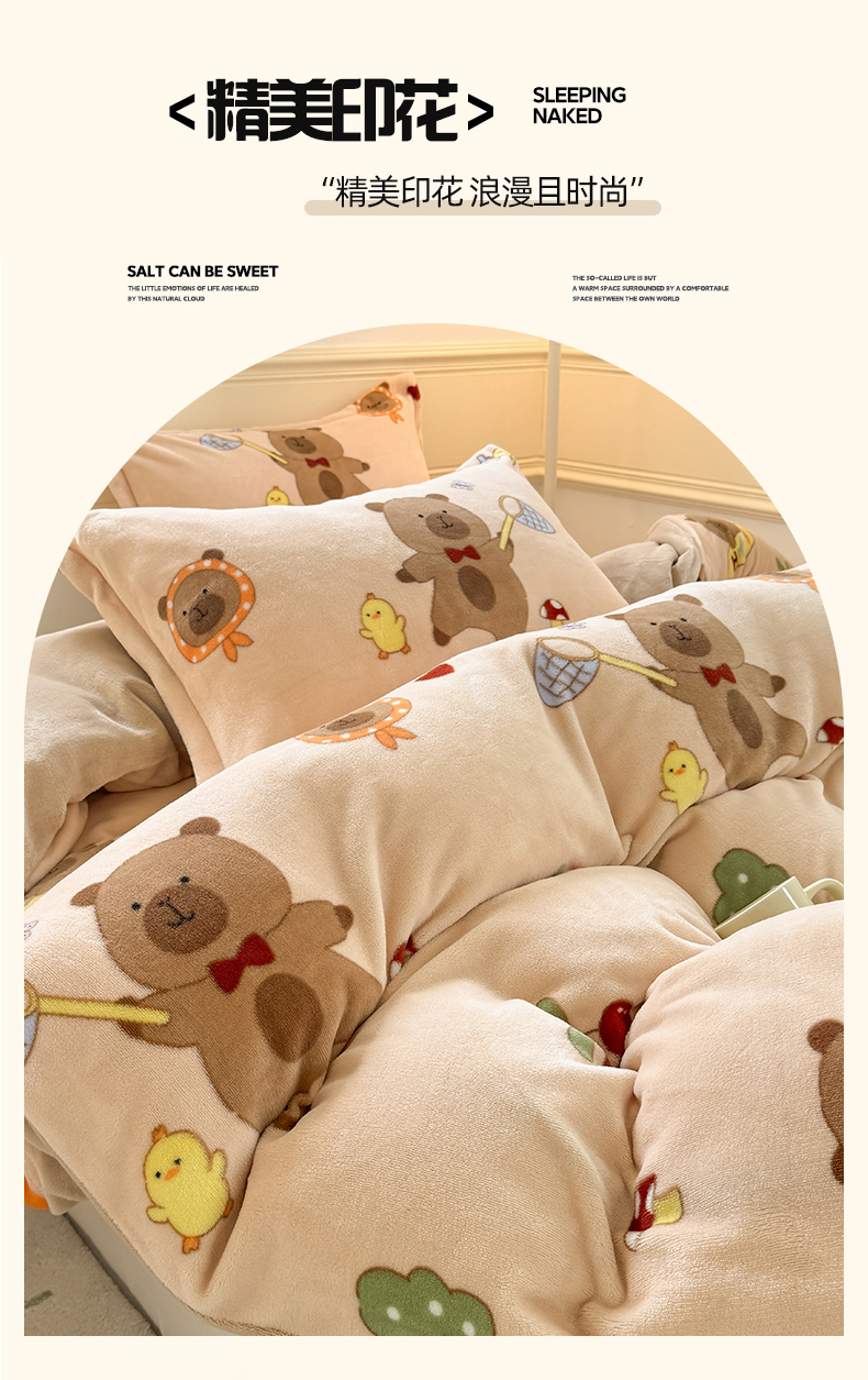当前位置: 91家纺网 > 商品网购 > 床品套件 > 四件套 > 牛奶绒四件套 > 艾特你 2025新款小清新高克重加厚牛奶绒印花四件套--风格二小窝图 橘子卡皮