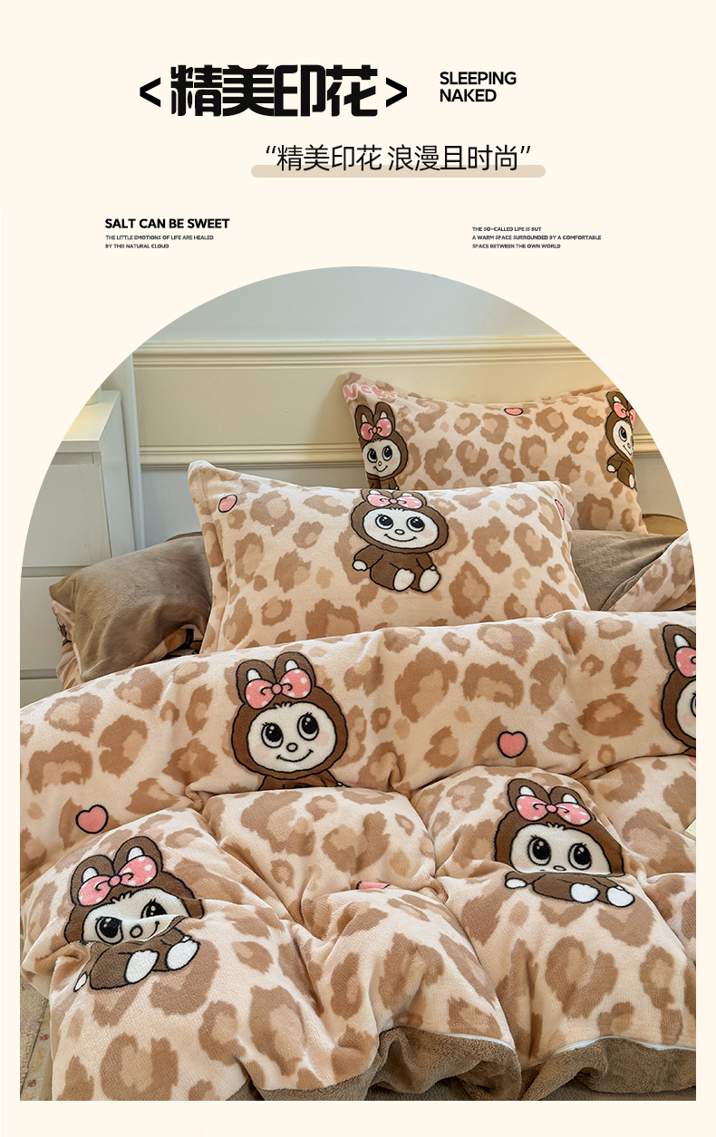 当前位置: 91家纺网 > 商品网购 > 床品套件 > 四件套 > 牛奶绒四件套 > 艾特你 2025新款小清新高克重加厚牛奶绒印花四件套--风格二小窝图 幸运布布
