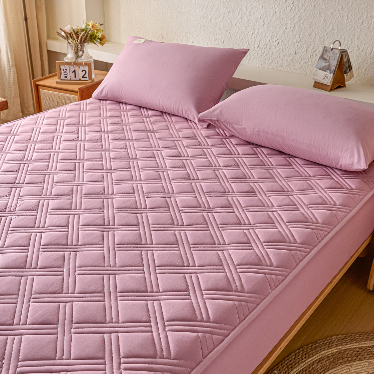 (总)衿成家纺 13372全棉喷起制造抗菌夹棉床笠,宝石蓝,典雅白,粉色,千草,浅灰,紫粉