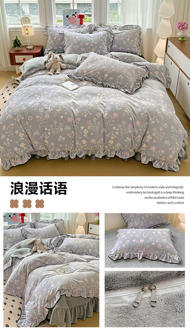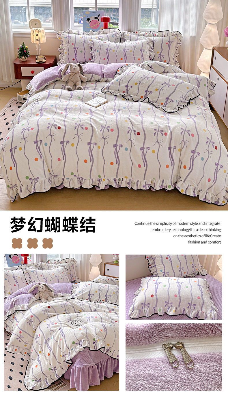 当前位置: 91家纺网 > 商品网购 > 床品套件 > 四件套 > 牛奶绒四件套 > 简一 2025新款牛奶绒花边床盖四件套 水墨蝴蝶