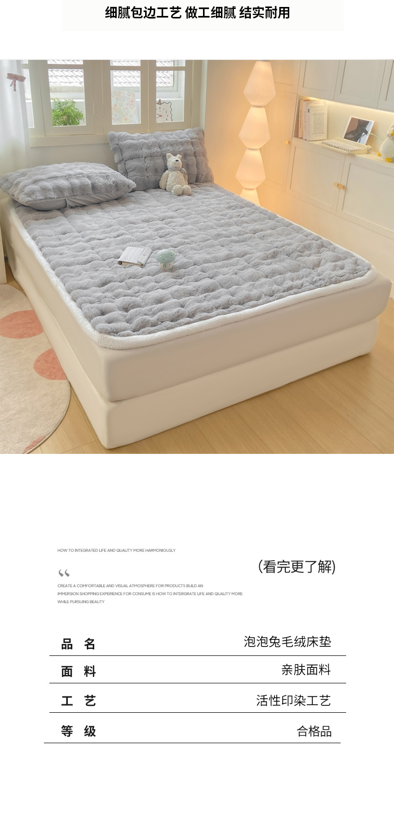 当前位置: 91家纺网 > 商品网购 > 床垫/床褥 > 普通床垫 > 麒东家纺 2025年新款兔毛绒泡泡绒夹棉床垫 浅灰