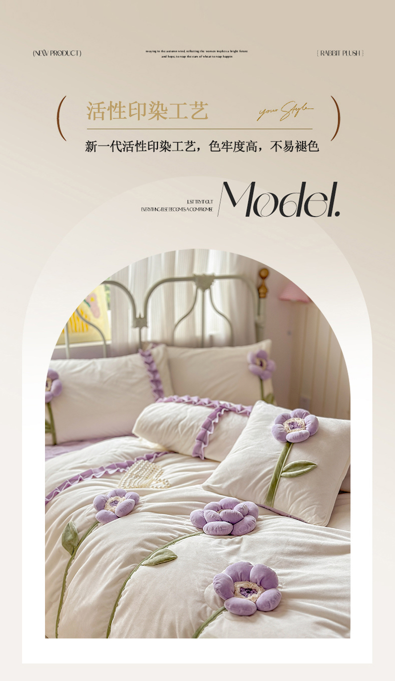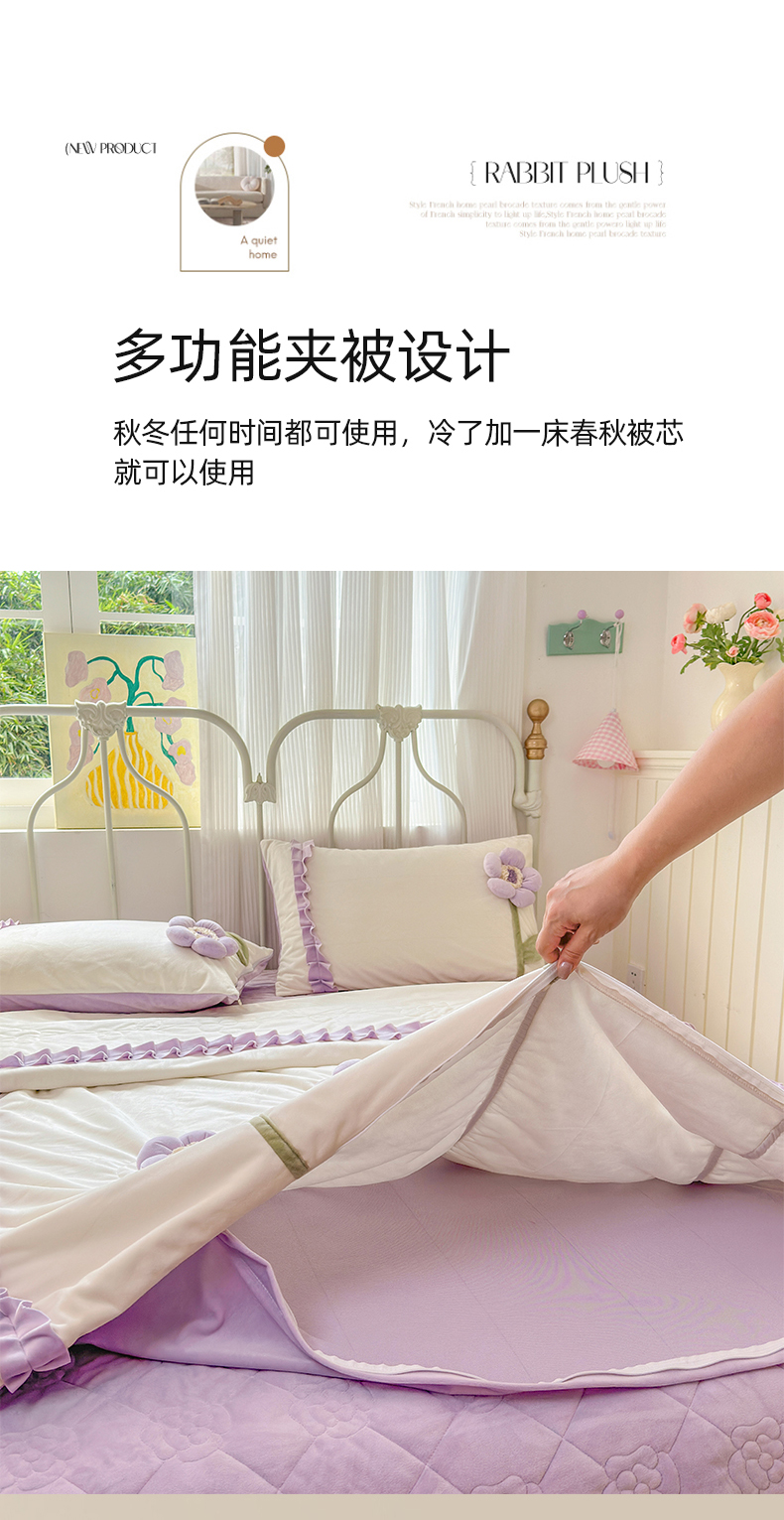 (总)淑女公社家纺 2025秋冬新款纯棉双层纱加韩国绒四件套,花园秘兔 咖,繁花,花园秘兔灰,欢乐熊,萌萌小兔,蘑菇小兔,甜酷女孩 粉,甜酷女孩 咖,甜心宝贝,童趣,熊先生与兔小姐,紫韵