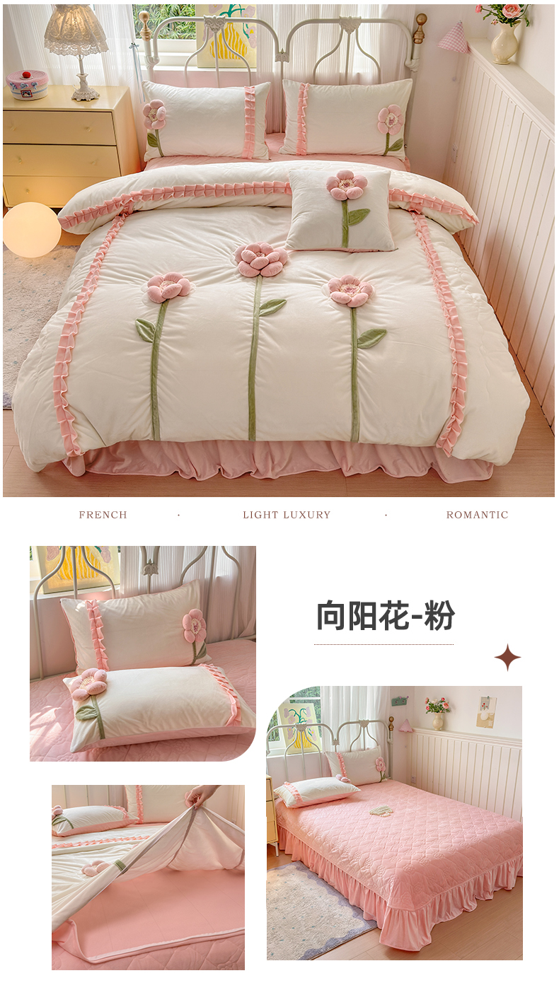 (总)淑女公社家纺 2025秋冬新款韩国绒多功能被套床盖款四件套-向阳花