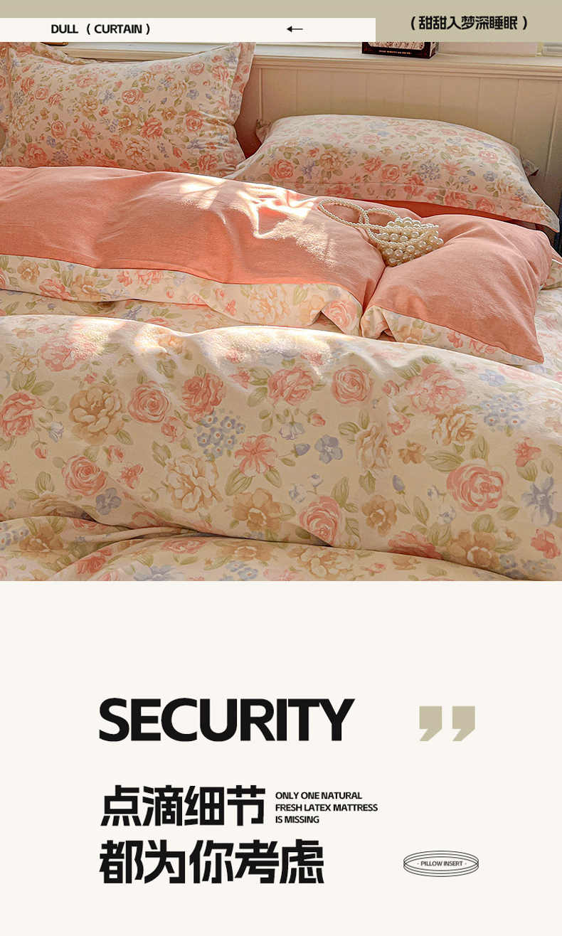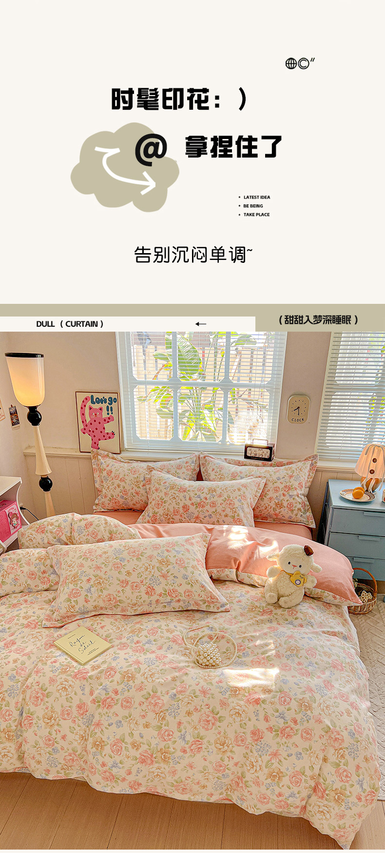 暖芯优选 2025新款小清新印花全棉磨毛四件套 幽梦玉