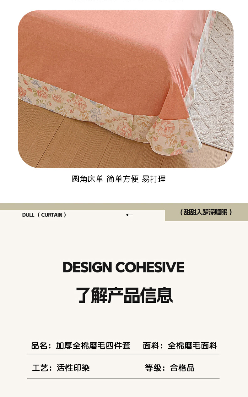商品名称:暖芯优选 2025新款小清新印花全棉磨毛四件套 幽梦玉