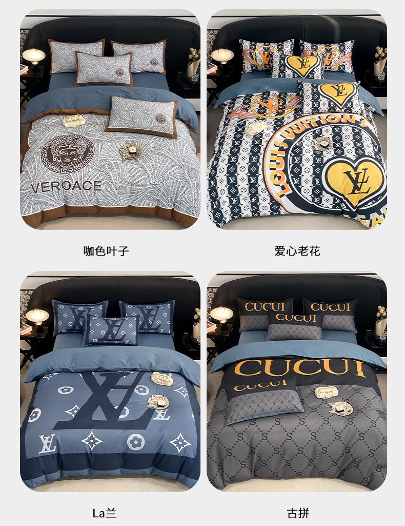 (总)花沐家居 2025新款数码印花潮牌云朵棉四件套,白色小香,粉豹纹,黑白老花,黑色小香,花千树,景年,蓝幕,绿色花朵,兮兔,小白熊,小黑熊,英伦熊