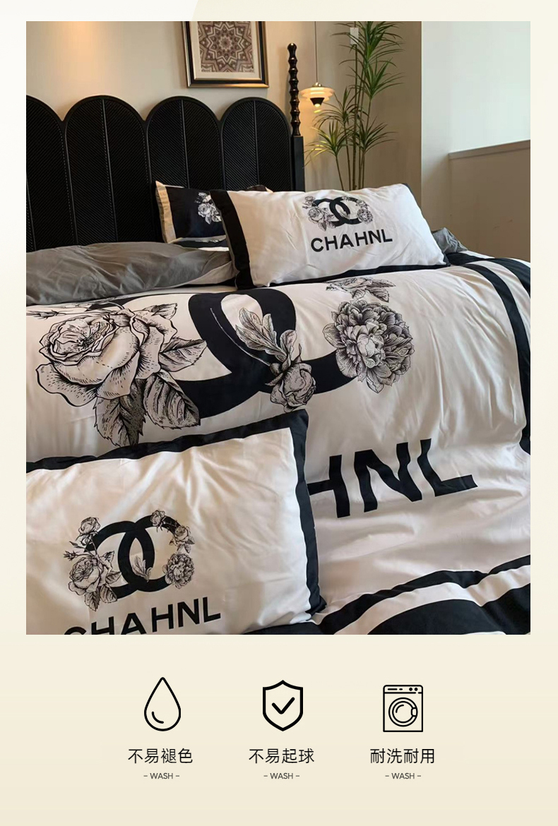 (总)花沐家居 2025新款数码印花潮牌云朵棉四件套,白色小香,粉豹纹,黑白老花,黑色小香,花千树,景年,蓝幕,绿色花朵,兮兔,小白熊,小黑熊,英伦熊