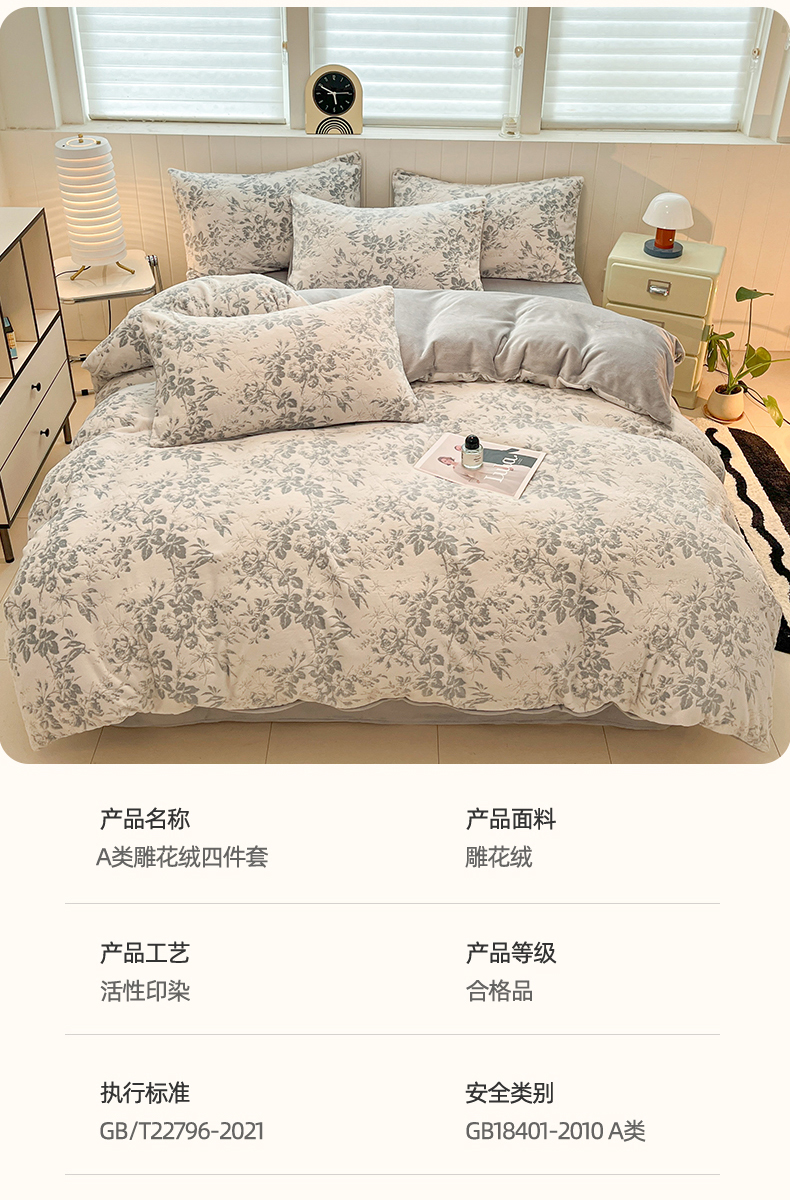 当前位置: 91家纺网 > 商品网购 > 床品套件 > 四件套 > 牛奶绒四件套 > 星座 2025新款牛奶绒雕花绒四件套 浅灰花蔓