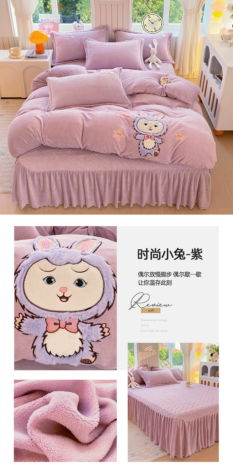 当前位置: 91家纺网 > 商品网购 > 床品套件 > 四件套 > 牛奶绒四件套 > 悦织湾家纺 2025新款牛奶绒四件套纯色贴布绣床单款床盖款床上用品四件套时尚小兔2025新款加厚 床盖款-时尚小兔-紫
