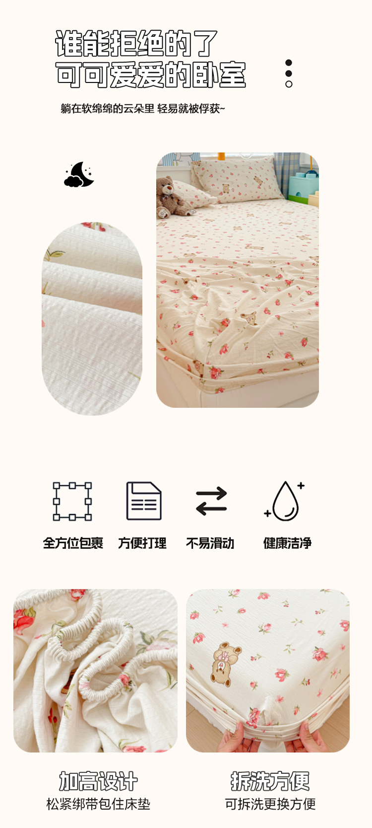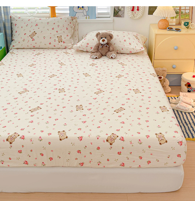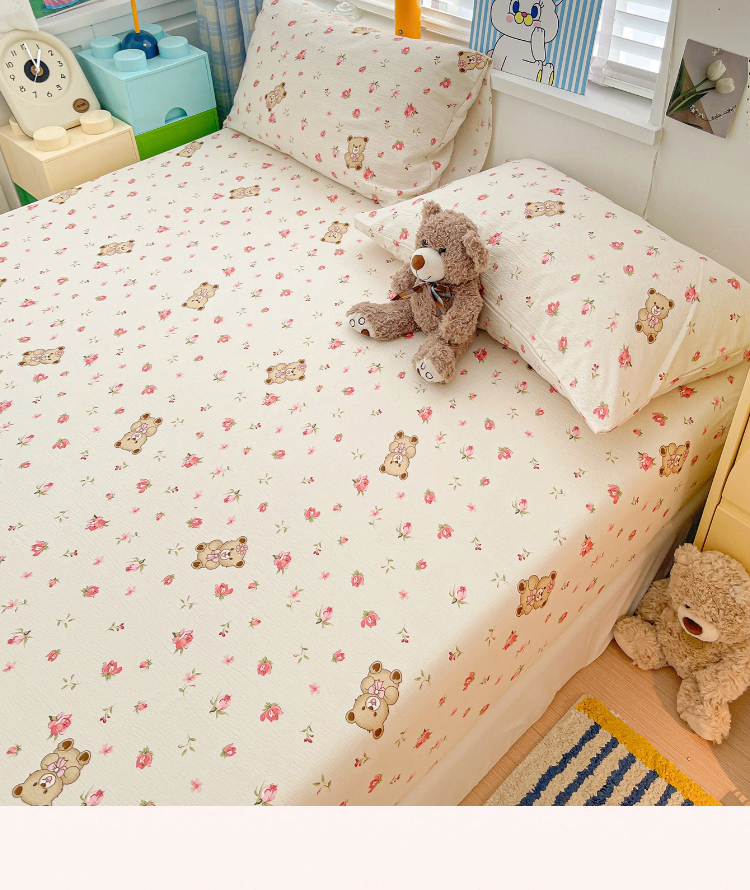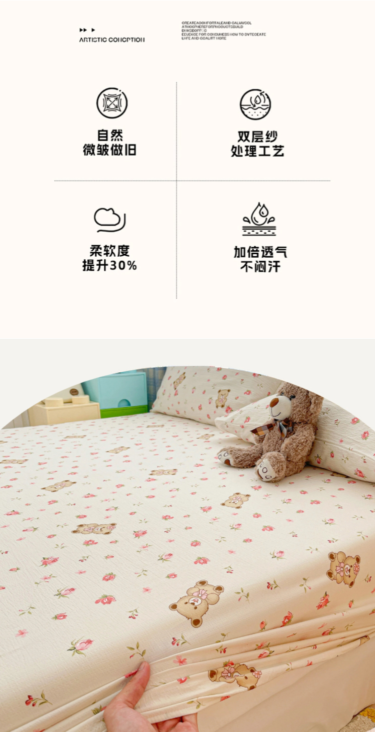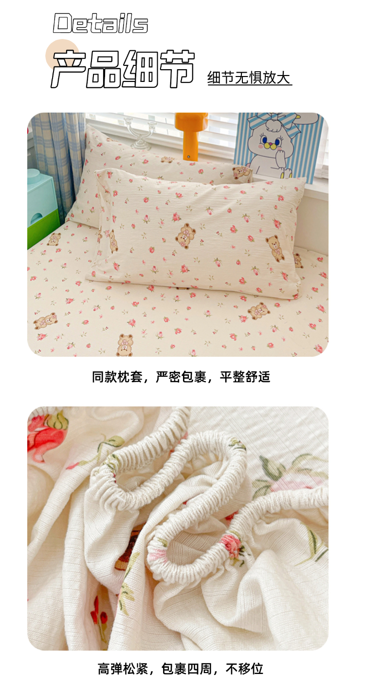 商品名称:维娜斯家纺 2025新款A类水洗棉双层纱床笠单件 小熊花园