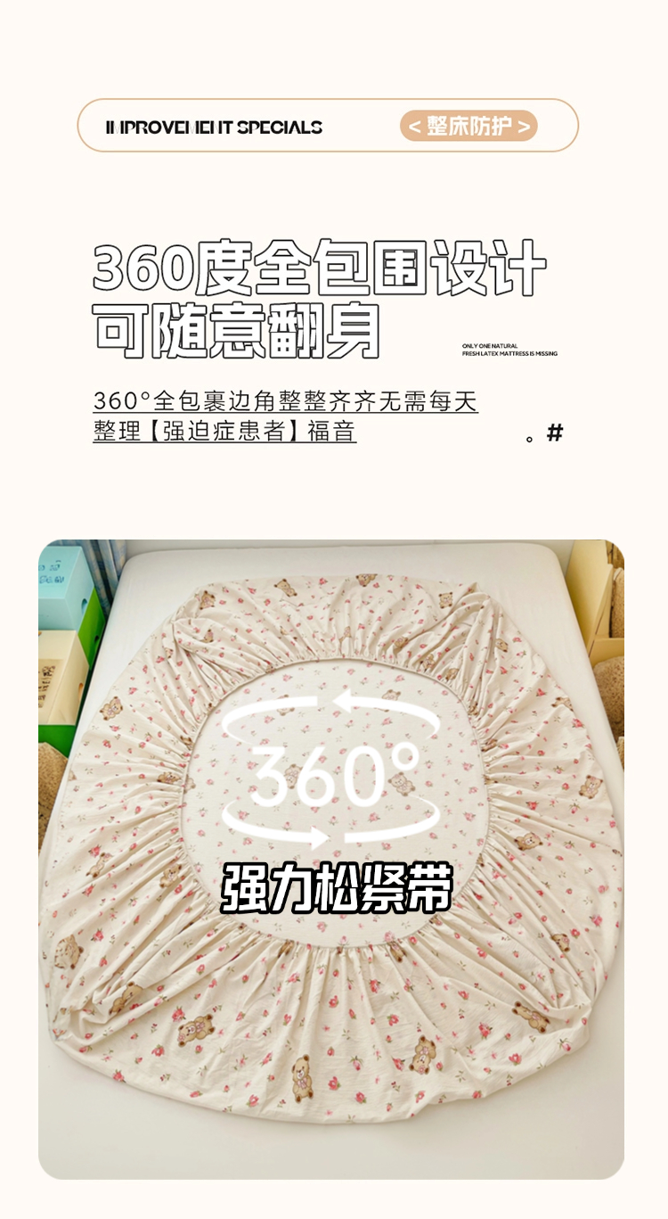 维娜斯家纺 2025新款A类水洗棉双层纱床笠单件 小熊花园