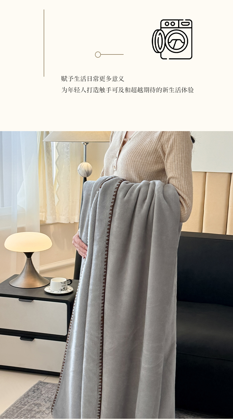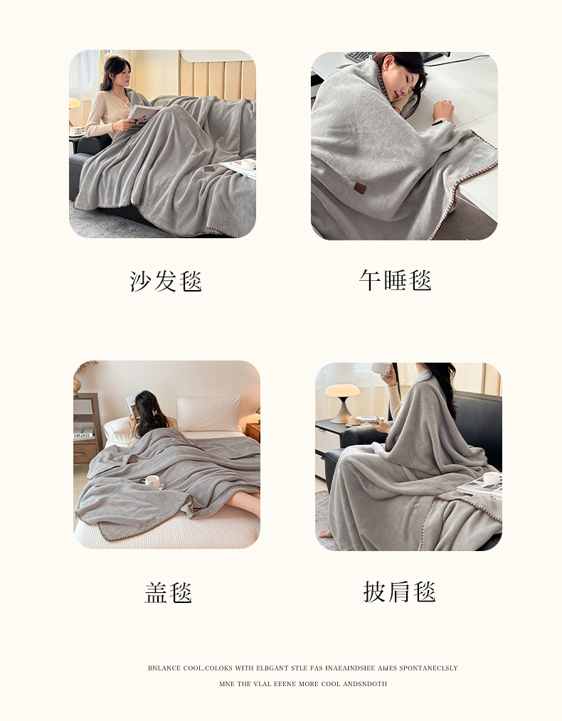 商品名称:格真 2025新款高克重双面仿羊绒多功能毯毛毯盖毯沙发毯午睡毯披肩毯-系列二 气质灰