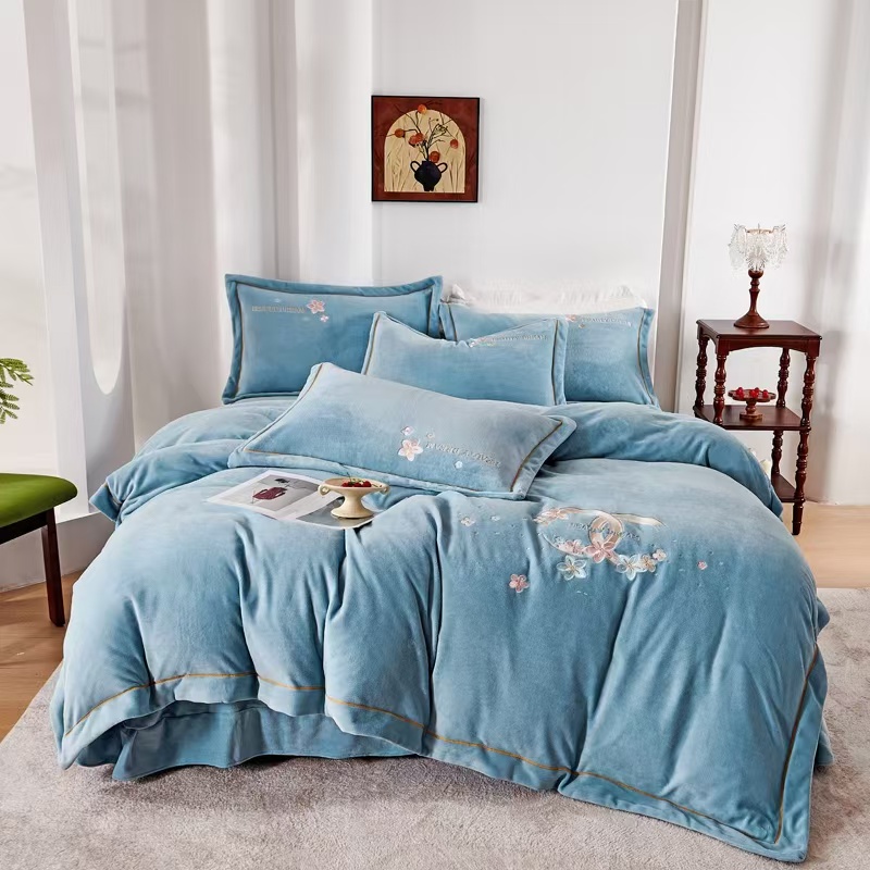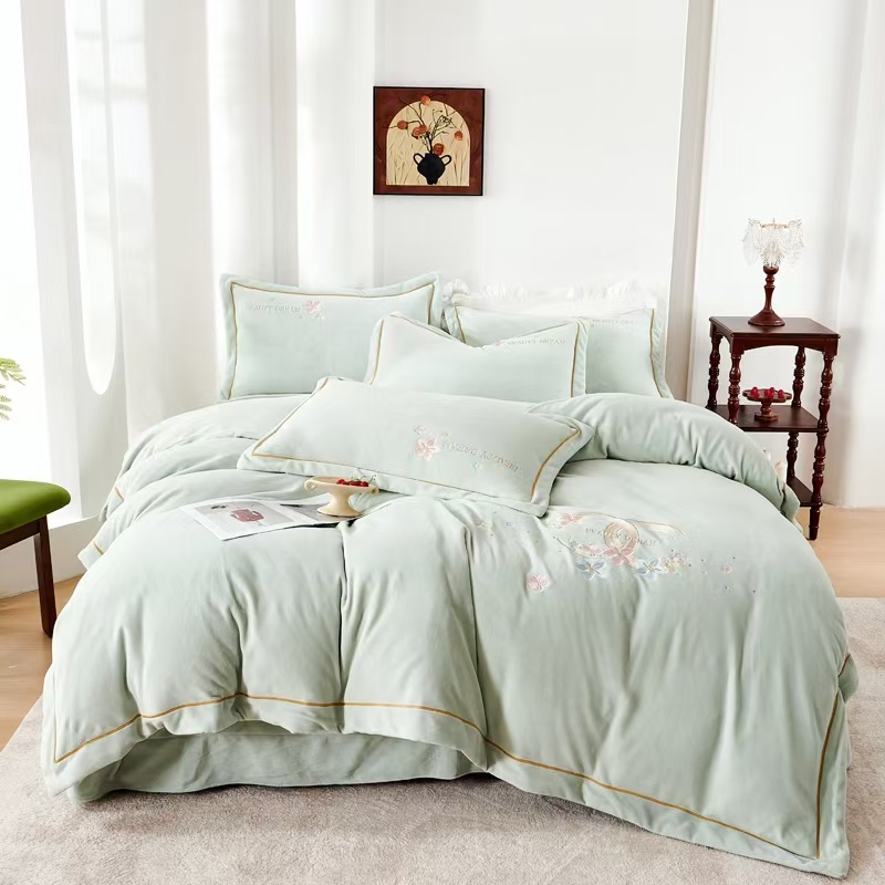 (总)玖琳家纺 2025新款商场定制款高克重刺绣牛奶绒四件套-香奈