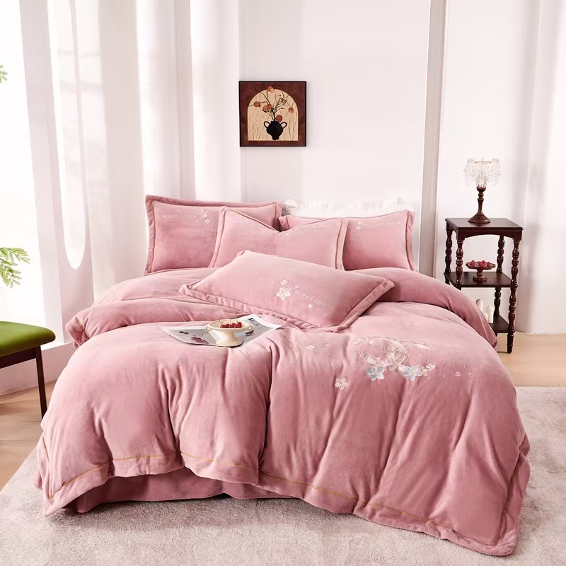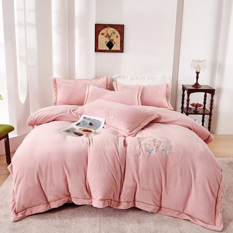 商品名称:(总)玖琳家纺 2025新款商场定制款高克重刺绣牛奶绒四件套-香奈