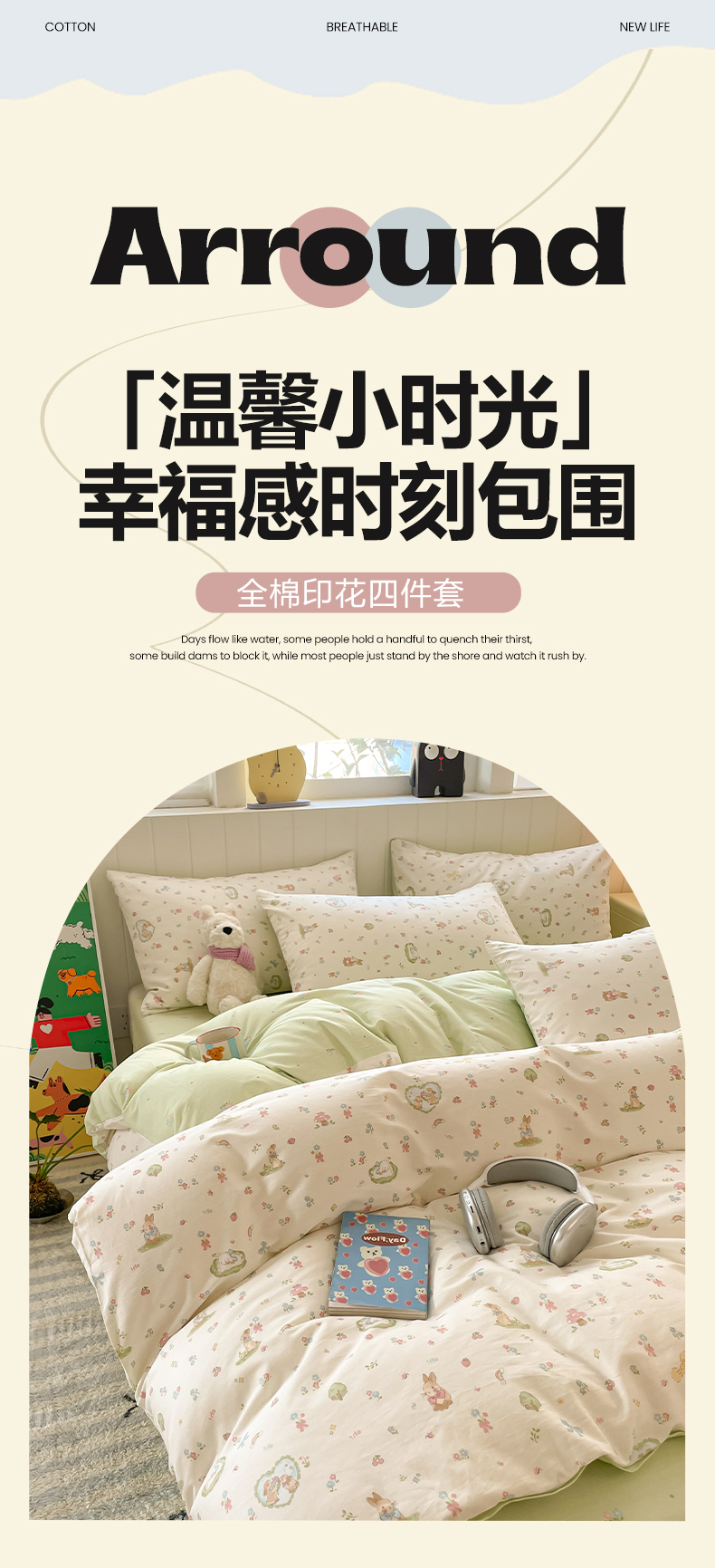 • 91家纺网 家纺一手货源 找家纺 (总)吉象家纺 2025新款12868全棉印花单被套,蓝色泡芙狗,蘑菇小兔,奶油甜心熊,碎花狗狗,碎花小兔,爪爪会客厅