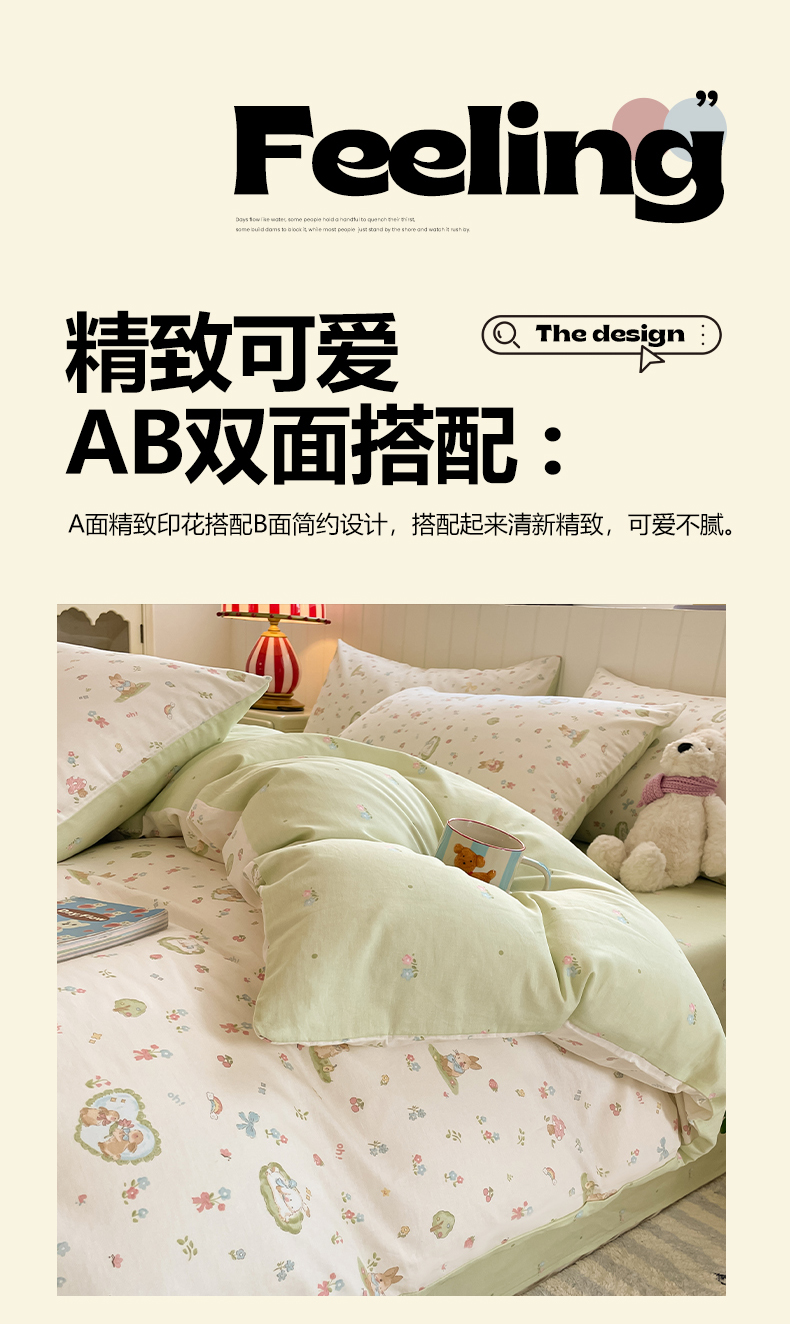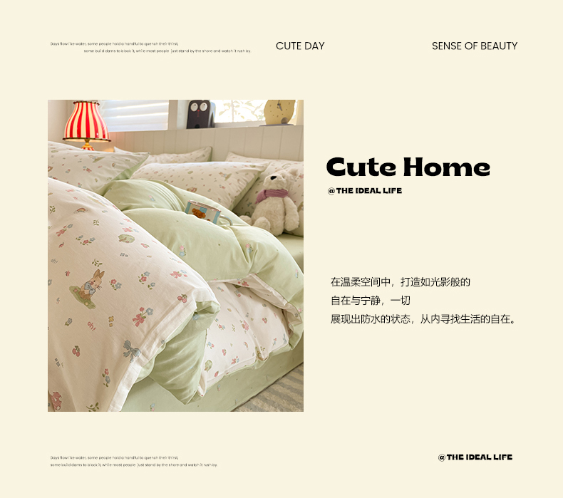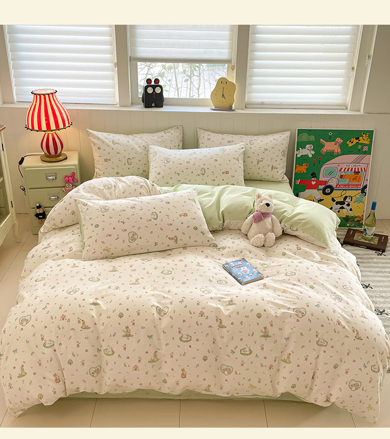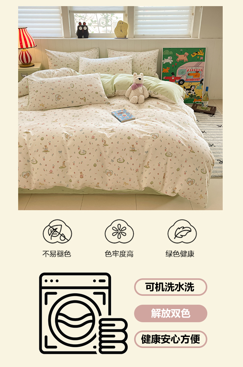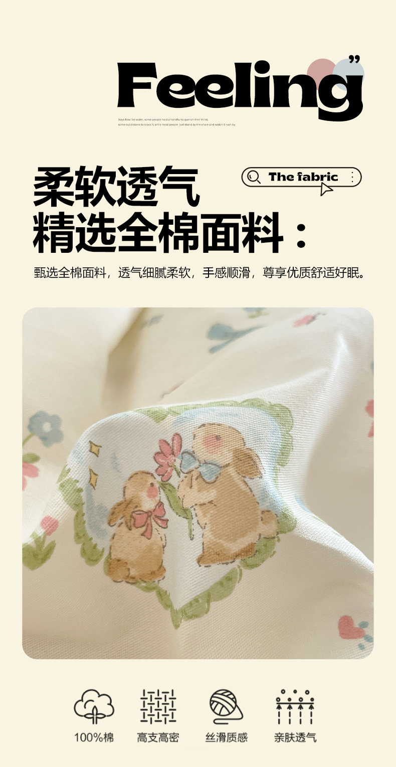• 91家纺网 家纺一手货源 找家纺 吉象家纺 2025新款12868全棉印花单被套 蘑菇小兔