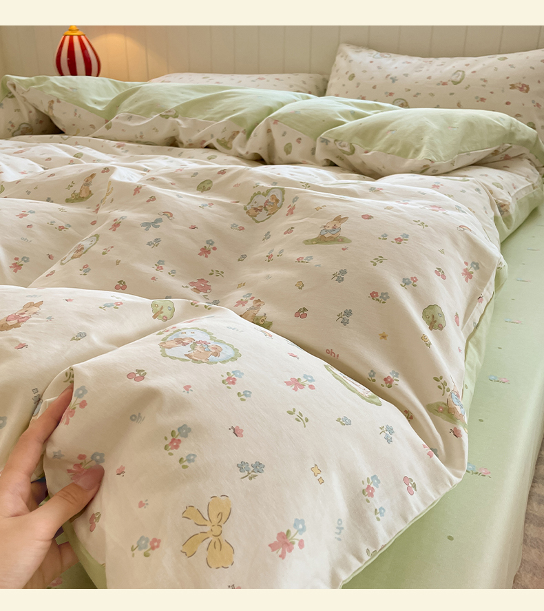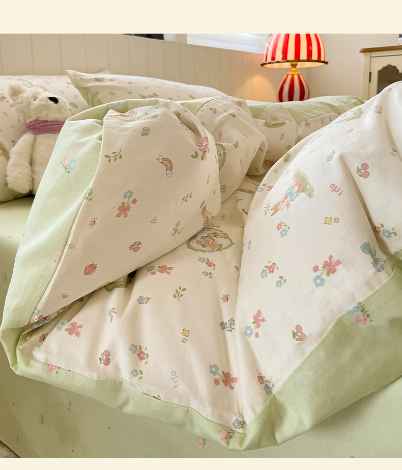 吉象家纺 2025新款12868全棉印花单被套 蘑菇小兔
